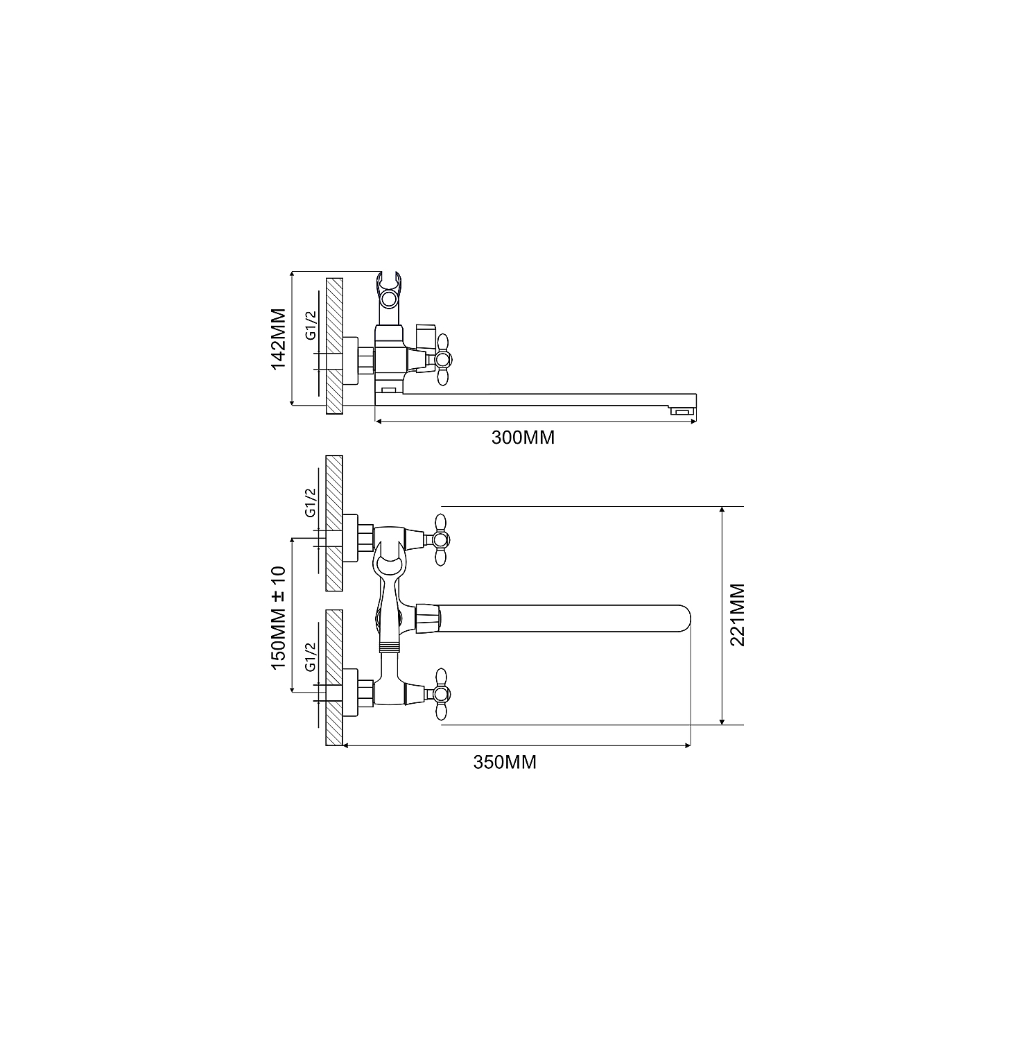 Управление осуществляется двумя керамическими кран-буксами с 20 шлицами, которые гарантируют плавное вращение на 180 градусов и точную настройку температуры воды. Переключение между режимами ванна/душ происходит с помощью специального картриджа с поворотом на 90 градусов.