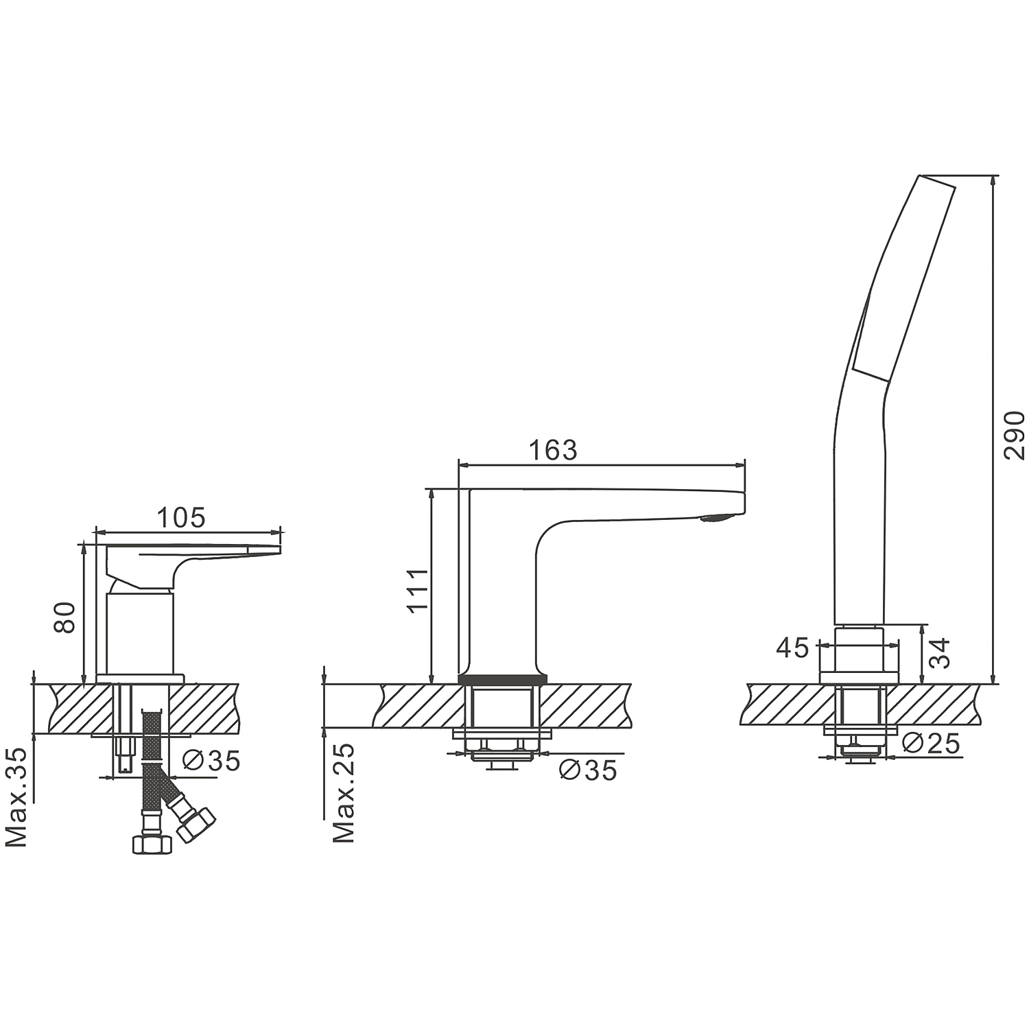 В комплект входят душевая лейка с тремя режимами струи, шланг длиной 1500 мм и фиксированный излив традиционной формы. Хромированное покрытие не только придает смесителю роскошный внешний вид, но и обеспечивает простоту ухода - поверхность устойчива к появлению разводов и легко очищается.