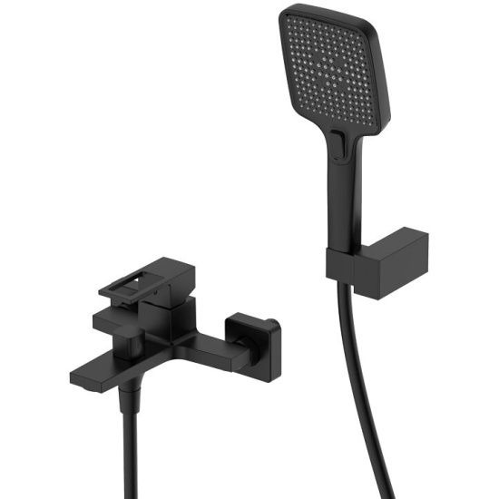 Смеситель для ванны DQ Dortmund DA1713205. Цвет-черный матовый. Современный дизайн, идеально подходящий для современных интерьеров, подчеркивает надежность немецкого производства. Комплектация: смеситель, эксцентрики, декоративная шайба (отражатель)-2шт, шланг душевой 1,5м, лейка душевая 3 режима, держатель душевой лейки, паспорт изделия, брендовый пакет.