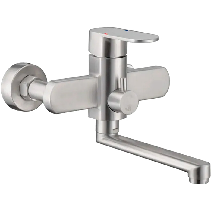 Смеситель для ванны Haiba HB60806 с длинным изливом из нержавеющей стали — это однорычажный вариант, который подходит для установки в ванной комнате с душем. Он изготовлен из качественной нержавеющей стали, имеет матовую поверхность и стильный дизайн. Основной механизм работает на керамическом картридже 35 мм, что обеспечивает долговечность и надежность. Длина излива составляет 20 см, что удобно для использования в ванне. В комплект также входит душевой гарнитур, включая шланг, душевую лейку и держатель.