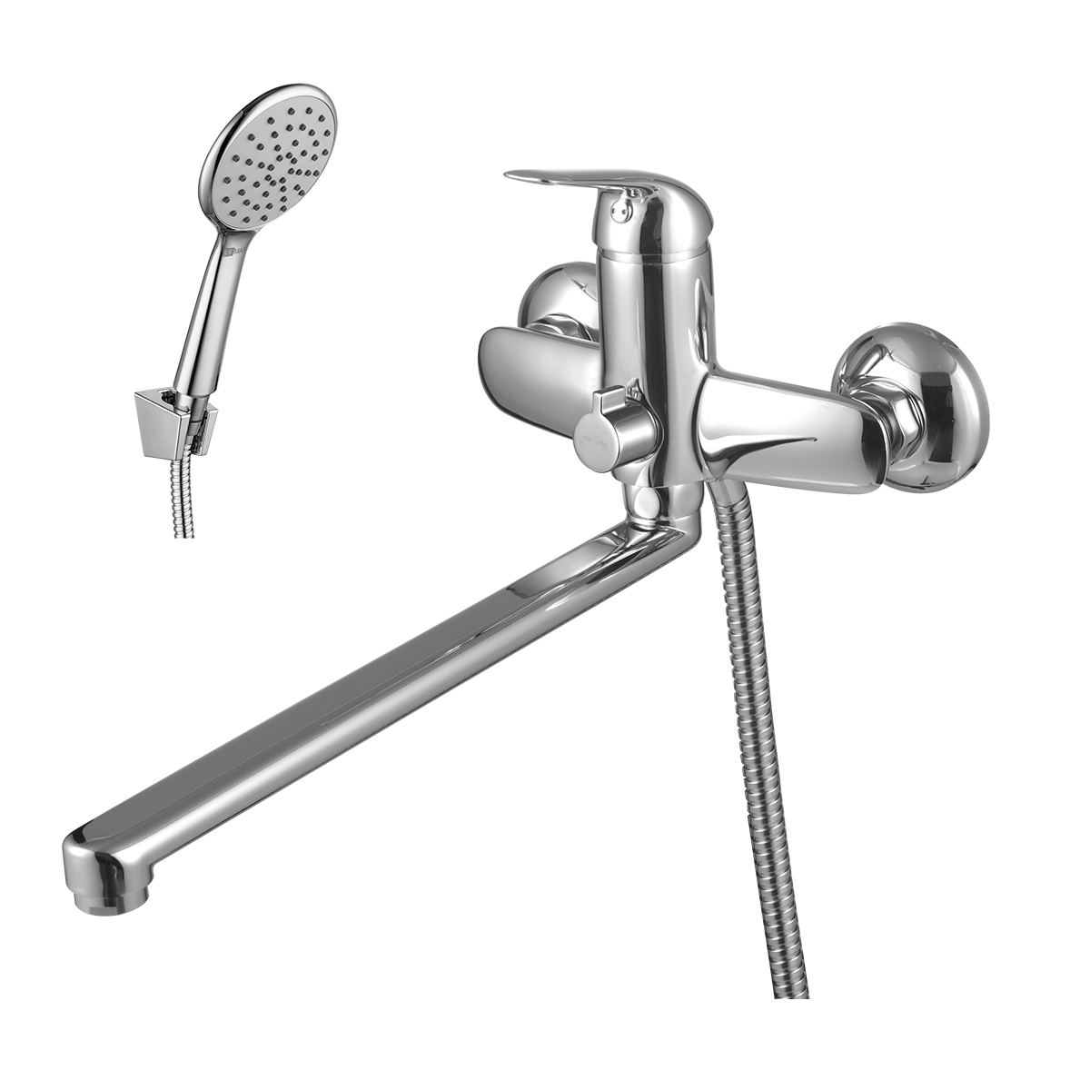 Система оснащена аэратором, 30-сантиметровым изливом, круглой лейкой, шлангом длиной 150 см, держателем и специальным набором для крепления конструкции.