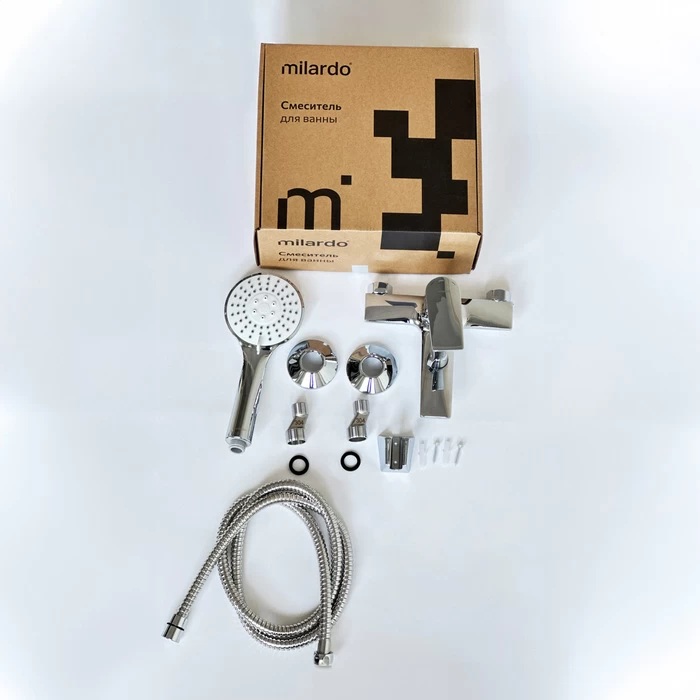 Ручная лейка с держателем, ПВХ-шланг (1,5 м) в оплетке из нержавеющей стали и крепеж идут в комплекте.