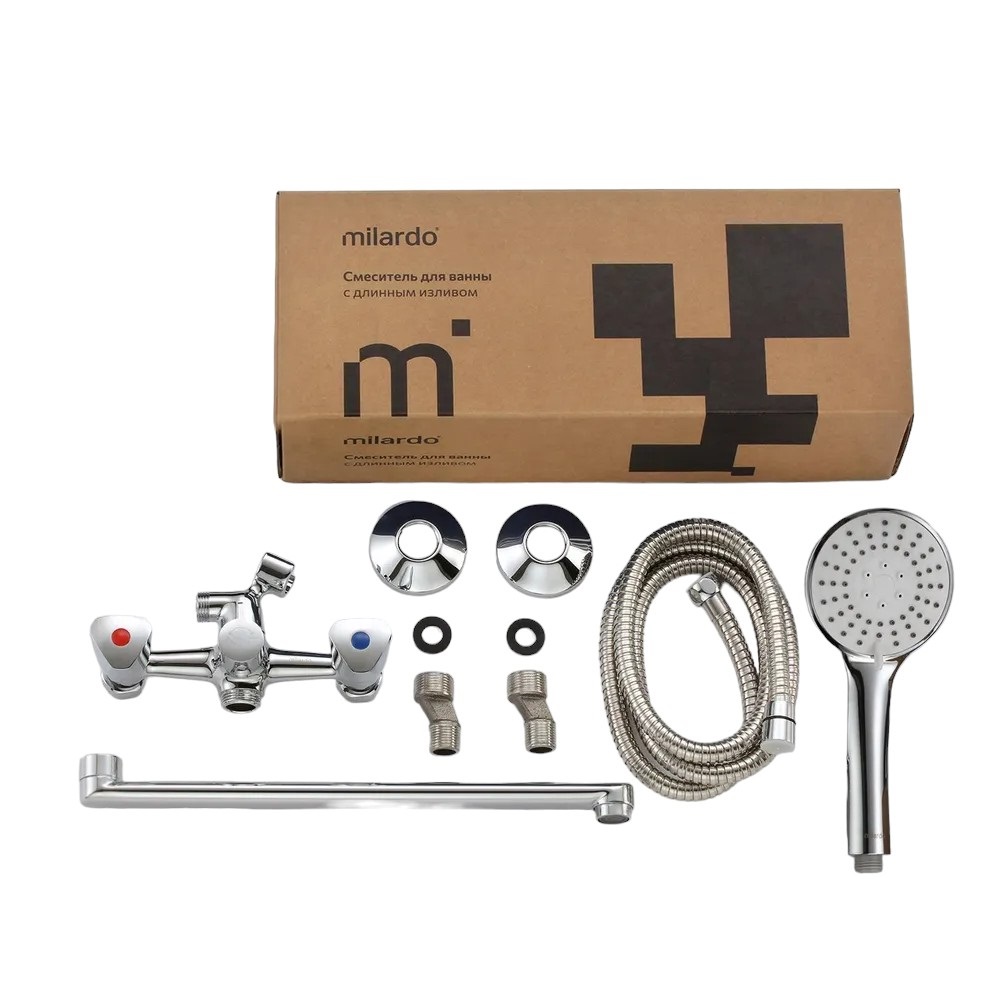 Смеситель для ванны Tring с удобными ручками классической треугольной формы, что позволяет легко регулировать температуру и напор воды даже мыльной рукой. Угол поворота ручек 180о обеспечивает точную регулировку температуры и напора воды, а термоизоляция не позволяет им нагреваться – взрослые и особенно дети защищены от случайных ожогов. Поворотный излив длиной 324 мм делает смеситель удобным как для купания, так и для уборки или стирки. В комплекте лейка для душа, шланг и держатель для лейки.