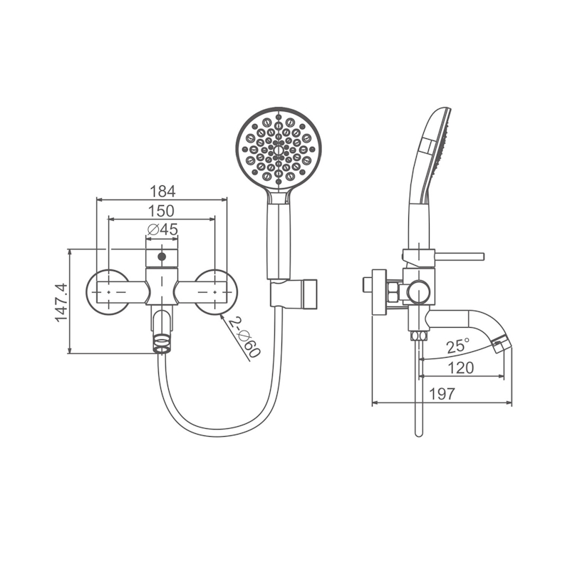 Шланг для душа длиной 150 см обеспечивает гибкость и удобство использования.