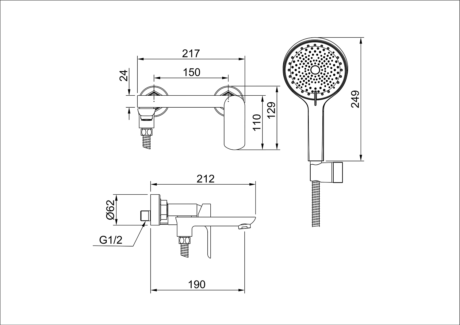 Система монтажа предусматривает установку на стену с использованием двух отверстий. Стандарт подводки — 1/2 дюйма, что делает установку максимально удобной.