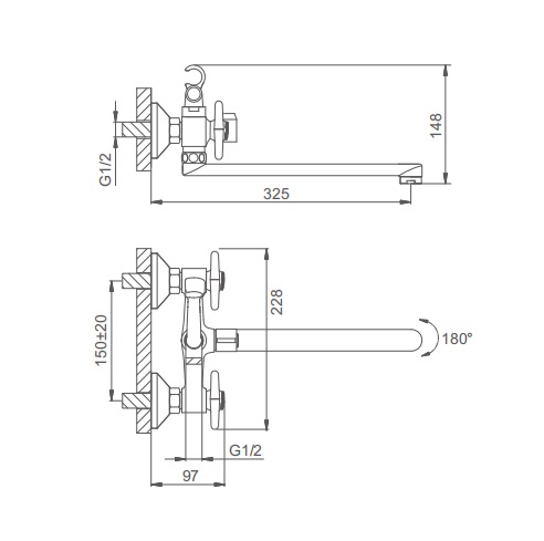 Особенностью модели является двухвентильное управление с керамическими кран-буксами, обеспечивающими плавное и точное регулирование температуры воды. Аэратор на изливе обогащает воду воздухом, создавая мягкий и равномерный поток.