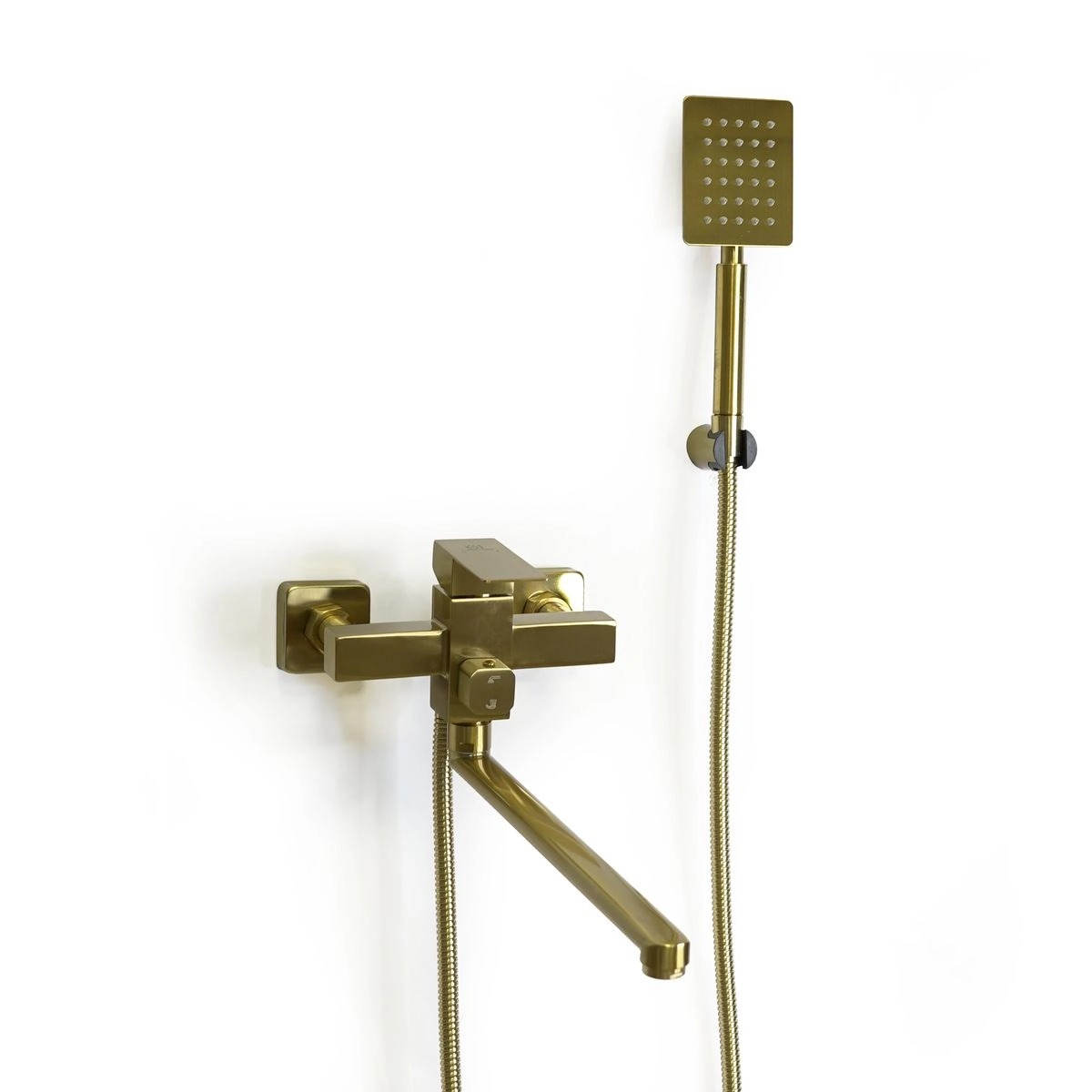 Дизайн смесителя универсален и впишется в разные варианты оформления ванной комнаты. Конструкция рассчитана на настенный монтаж. Устройство сочетает в себе функциональность и доступную цену, подходит для установки как в жилых, так и в коммерческих помещениях.