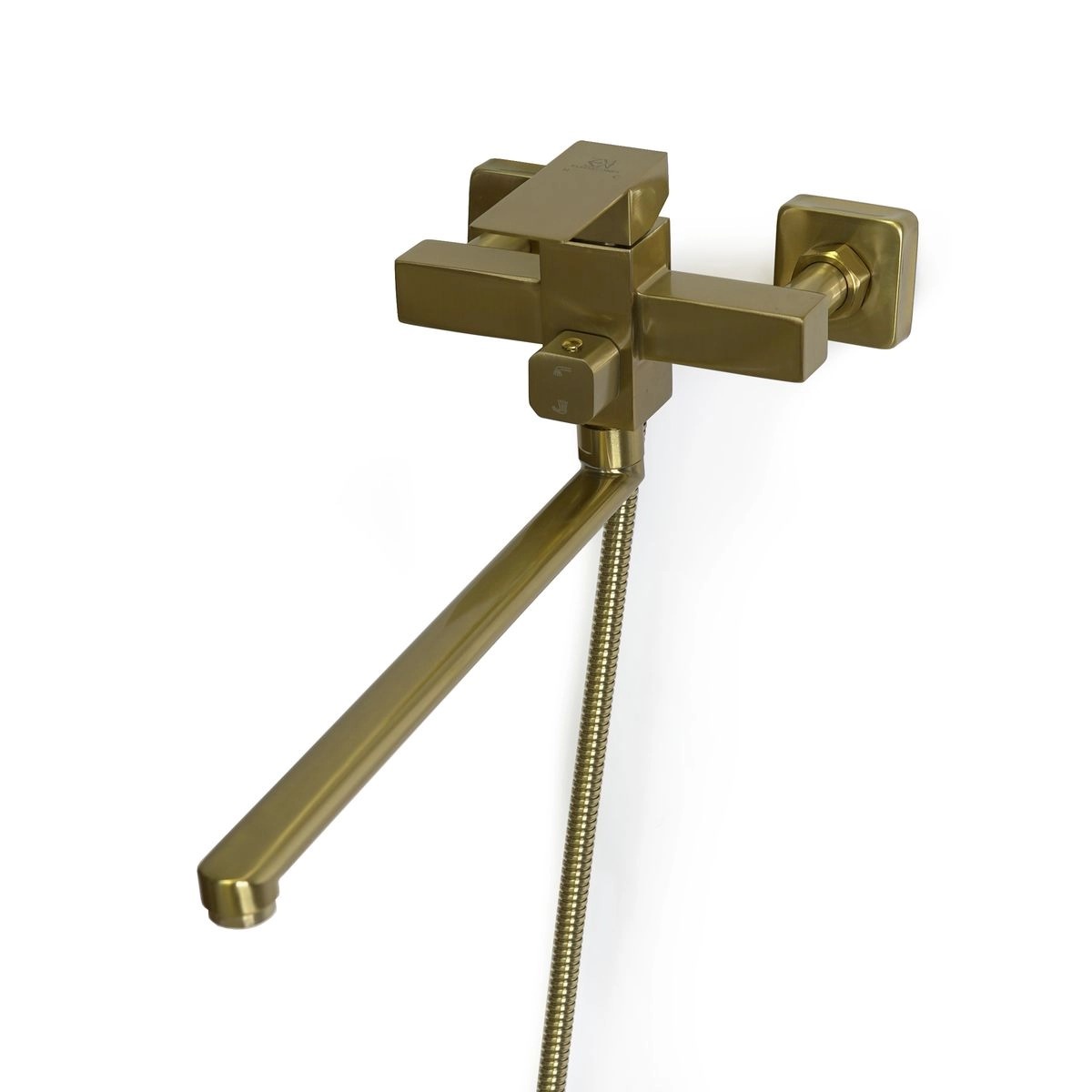 Смеситель для ванны Wasser Zimmer ZM-7722-16K — модель с длинным изливом в матовом бронзовом исполнении. Изготовлен из нержавеющей стали (SUS304), что обеспечивает прочность, долговечность и устойчивость к коррозии.