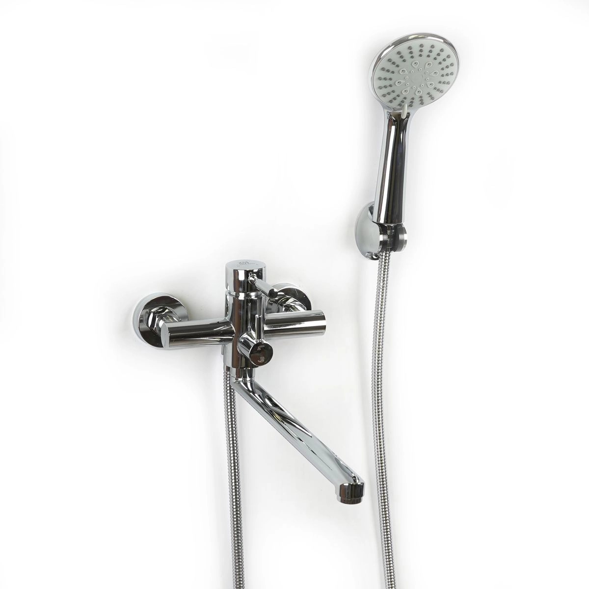 У смесителя рычажный тип управления с керамическим картриджем, который обеспечивает плавную регулировку температуры и напора воды. Длина излива составляет 350 мм, он выполнен в поворотной конфигурации — это повышает удобство использования и позволяет оптимально направить поток воды. Гибкий излив не предусмотрен. Дизайн модели отличается округлыми линиями и глянцевым хромированным покрытием, которое гармонично впишется в интерьер ванной комнаты в современном стиле.