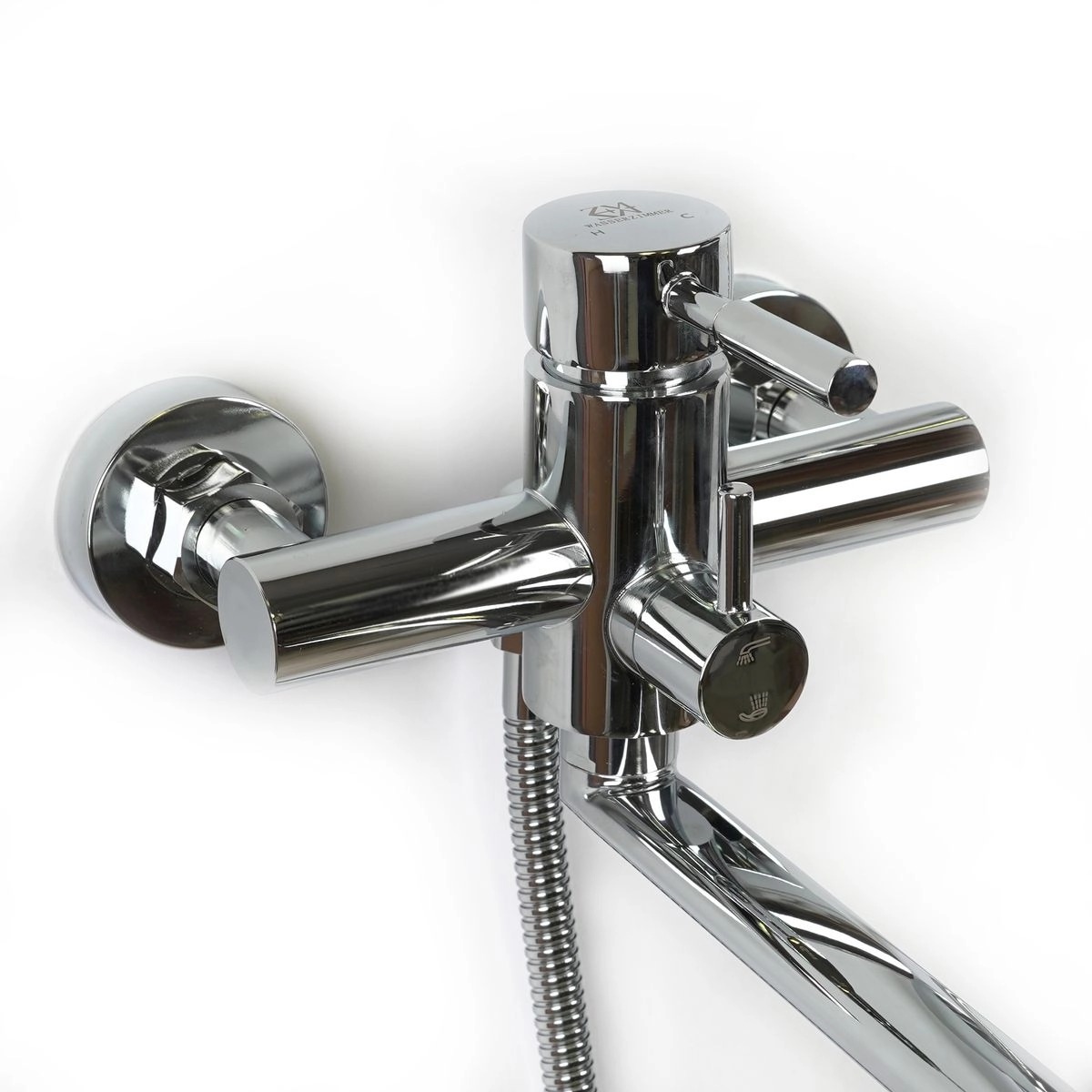 Смеситель для ванны Wasser Zimmer ZM-7728-16 в хромированном исполнении — современная модель с длинным поворотным изливом, рассчитанная на настенный монтаж. Изготовлен из нержавеющей стали (SUS304), что гарантирует долговечность, устойчивость к коррозии и сохранение презентабельного вида даже при интенсивной эксплуатации.