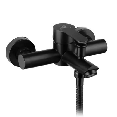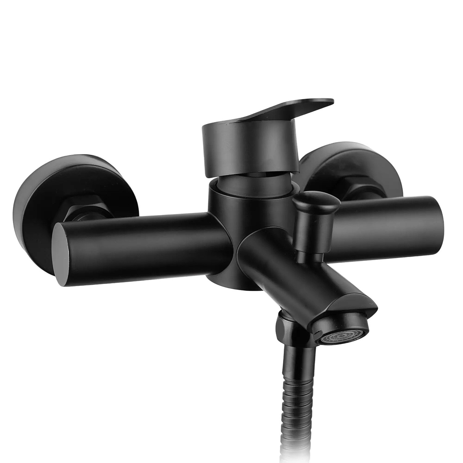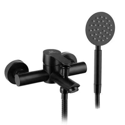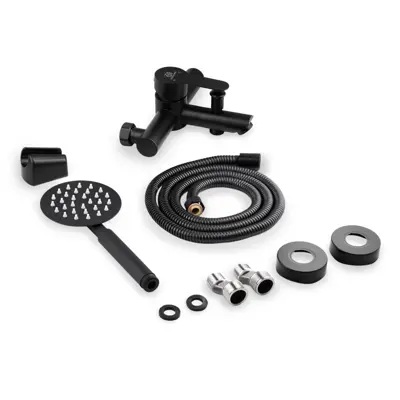 Смеситель для ванной с шаровой ручкой, высококачественным шлангом и лейкой выполнен в изящном черном матовом цвете и прекрасно подходит под любой стиль: удобная шаровая ручка четко сидит на керамическом картридже 35 мм, досконально точно регулируют напор и температуру воды. Корпус смесителя сделан из высококачественной нержавеющей стали, а это дает такие преимущества, как: легкий уход, устойчивость к коррозии, корпус не нагревается, широкий выбор дизайнов и цветов, доступная цена, увеличенный срок службы по сравнению со смесителями из силумина, стандартные легкозаменяемые детали. Смеситель для ванной с коротким изливом, высококачественным шлангом и лейкой черный наполнит Вашу ванную комнату изяществом и подчеркнет вкус и индивидуальность своего владельца. В комплекте поставляется: смеситель, эксцентрики, чашки, лейка, держатель для лейки.