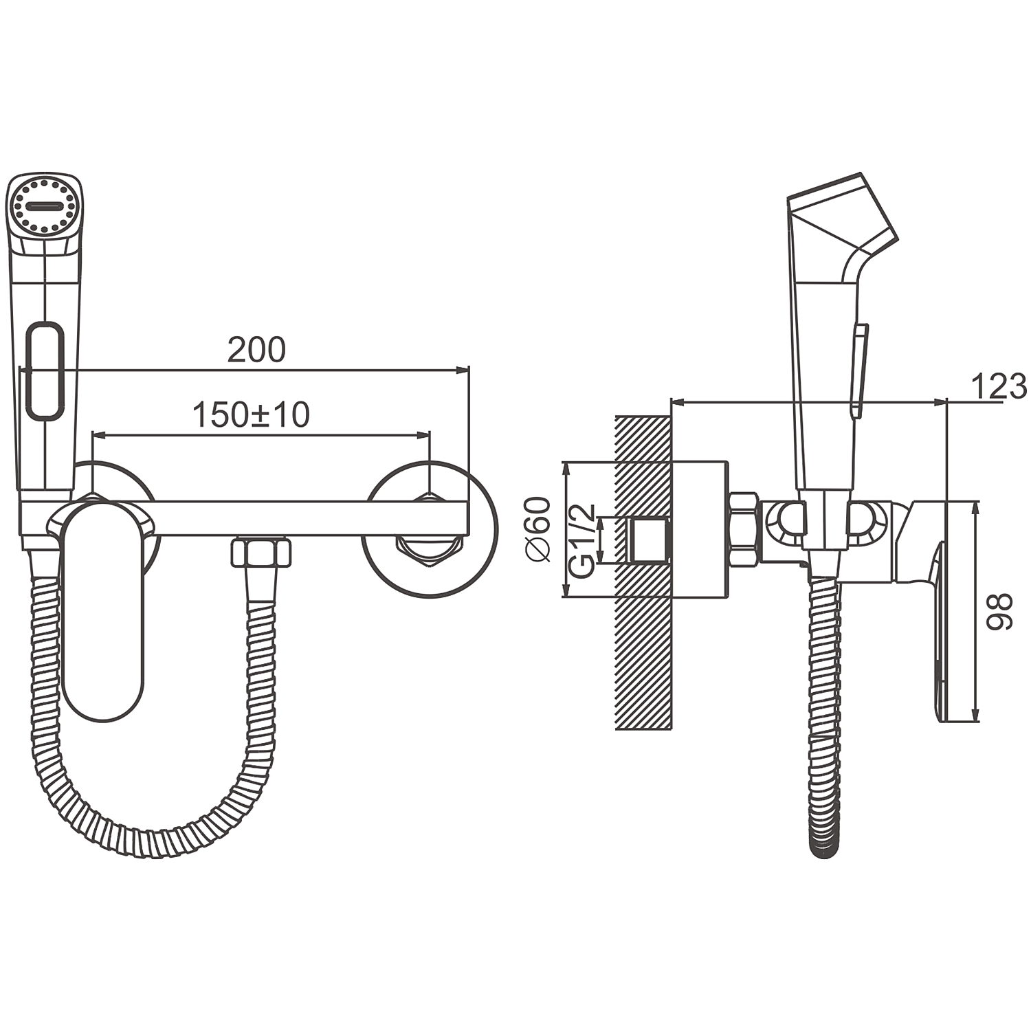 Гигиенический душ со смесителем Belz B55645 в цвете «хром» — комплект для установки в ванной комнате или туалете. Подходит для использования с биде или рядом с унитазом.