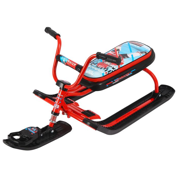 Снегокат предназначен для перевозки детей по плотному снегу или льду, катанию с горок. Имеет сварную конструкцию из стальных труб и пластиковых элементов. Оснащён мягким сиденьем, обтянутым искусственной кожей с рисунком. Оборудован буксировочным тросом с автоматической намоткой и системой амортизации, которая обеспечивает комфортную поездку по крутым горкам и неровным поверхностям. Усиленный тормоз эффективен на обледенелой поверхности.