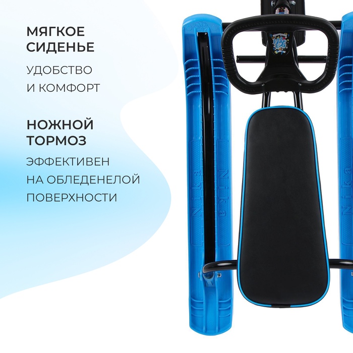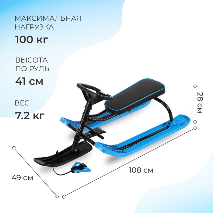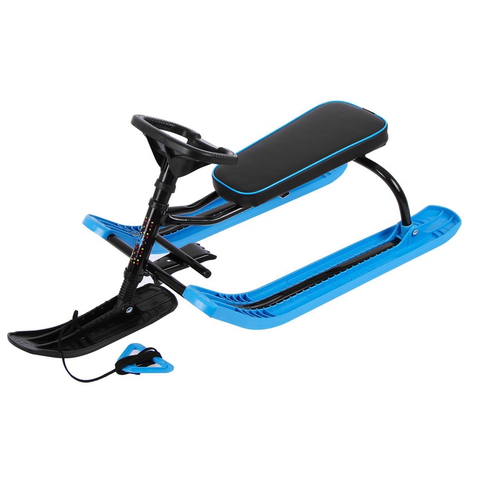 Снегокат предназначен для перевозки детей по плотному снегу или льду, катанию с горок. Имеет сварную конструкцию из стальных труб, пластиковых элементов и мягкое сиденье, обтянутое искусственной кожей. Оснащён буксировочным тросом. Тормоз эффективен на обледенелой поверхности.