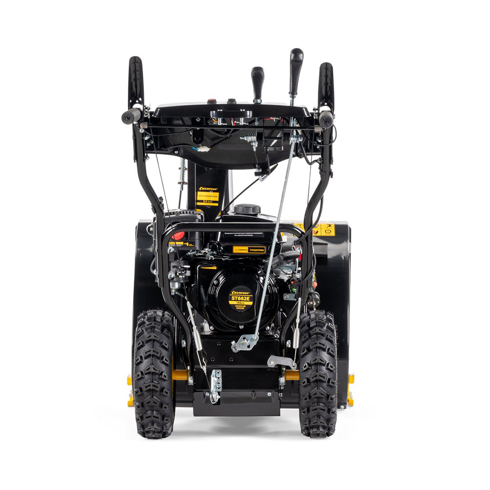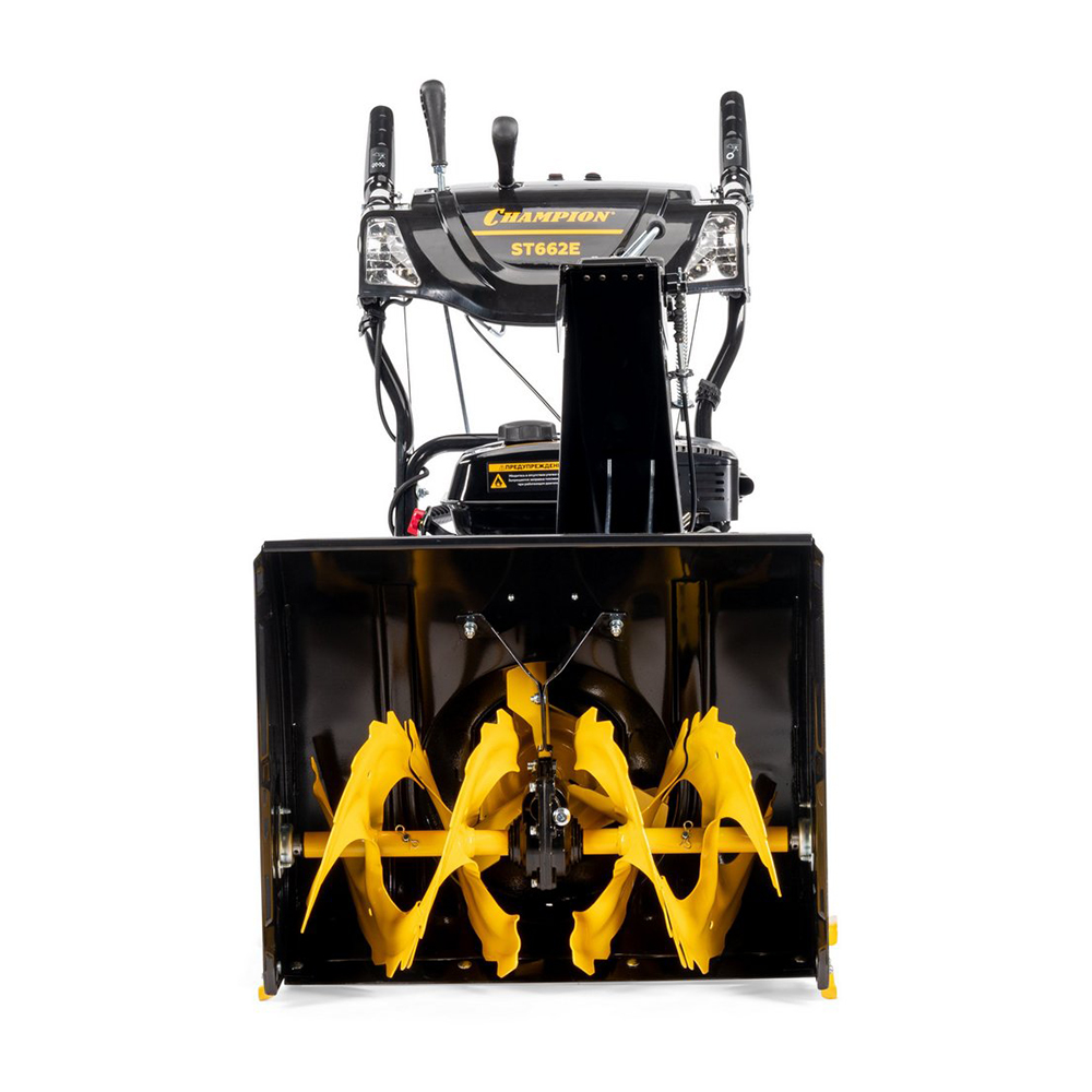 Снегоотбрасыватель CHAMPION ST662E подходит для уборки тяжелого и обледенелого снега. Оснащен двухступенчатой системой шнеков, которая позволяет ему отбрасывать снег на расстояние до 11 м. Электрический стартер, подключаемый к электросети, обеспечивает легкий запуск мотора при любой температуре. Фары позволят проводить работы в условиях зимних сумерек. Обогрев рукояток обеспечивает комфортную работу в холод. Металлические шнеки с зубцами эффективно измельчают снег любой плотности. Положение желоба выброса снега регулируется дистанционно на панели. Установленные на CHAMPION ST662E фары обеспечивают более комфортную работу в темное время суток. Агрессивный протектор колес - для хорошего сцепления с поверхностью даже в гололед.