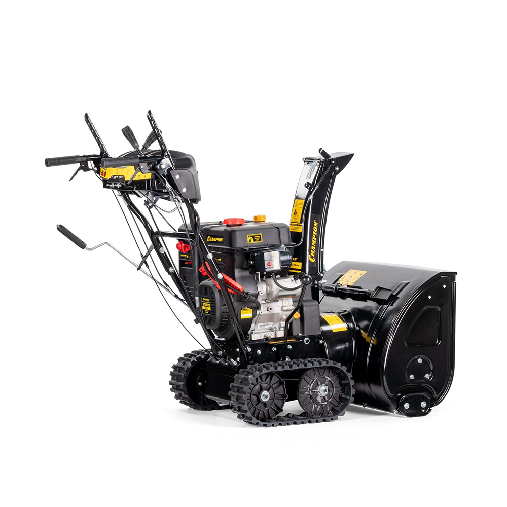 Снегоуборщик бензиновый Champion STT1171E - это профессиональный снегоуборщик, предназначенный для уборки тяжелого слежавшегося снега и наледи на больших площадях. Основным преимуществом этой модели является гусеничный привод, позволяющий использовать машину на обледенелых участках и склонах.