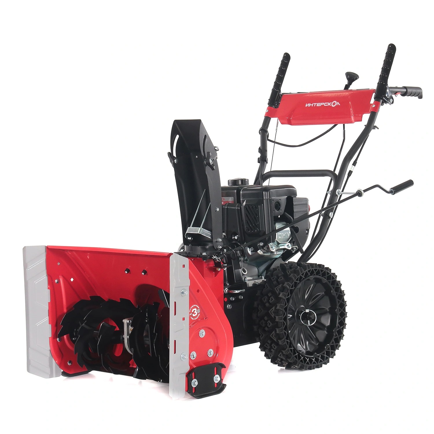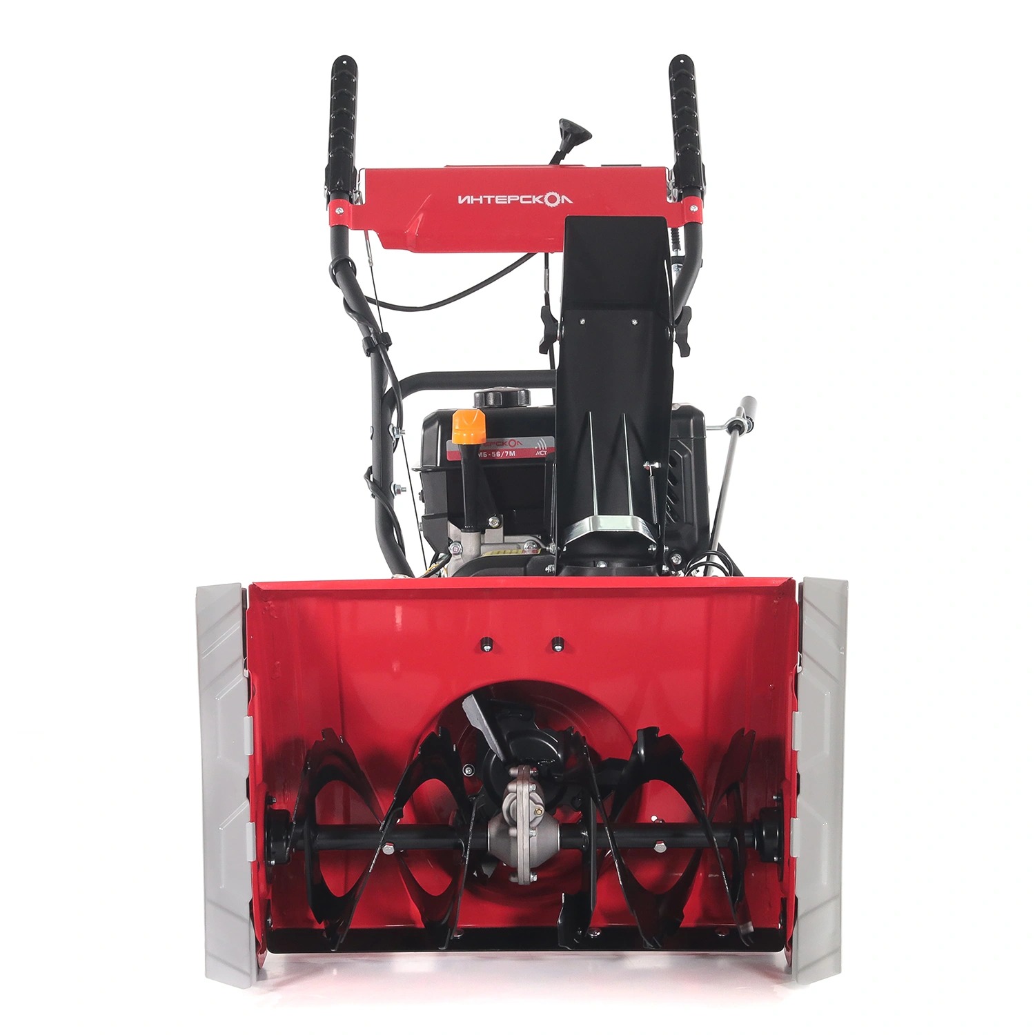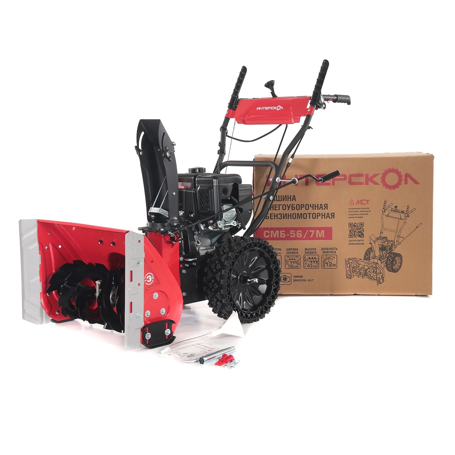 Бензиномоторный снегоуборщик ИНТЕРСКОЛ СМБ-56/7М оснащен мощным зимним двигателем на 7 л.с. и двухсоставным металлическим зубчатым шнеком, что позволяет успешно решать снегоуборочные задачи практически любой сложности. Машина является самоходной: колеса с безвоздушными зимними шинами обеспечивают отличную проходимость, а наличие пяти передач для движения вперед и двух – назад позволяют выбрать оптимальный режим работы в зависимости от плотности снега, толщины снежного покрова, размеров очищаемой площадки, возможностей пользователя и т.п., эффективно маневрируя даже в ограниченном пространстве.