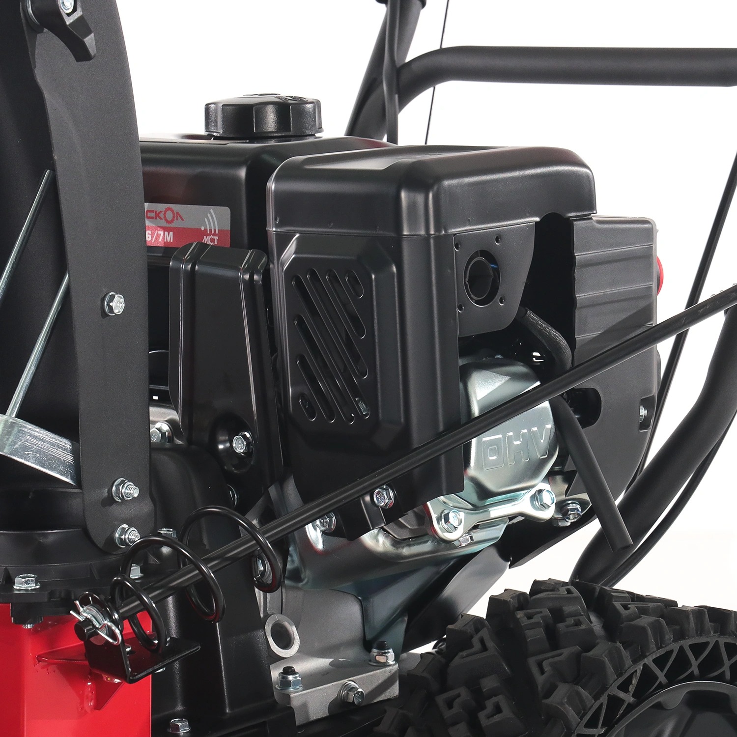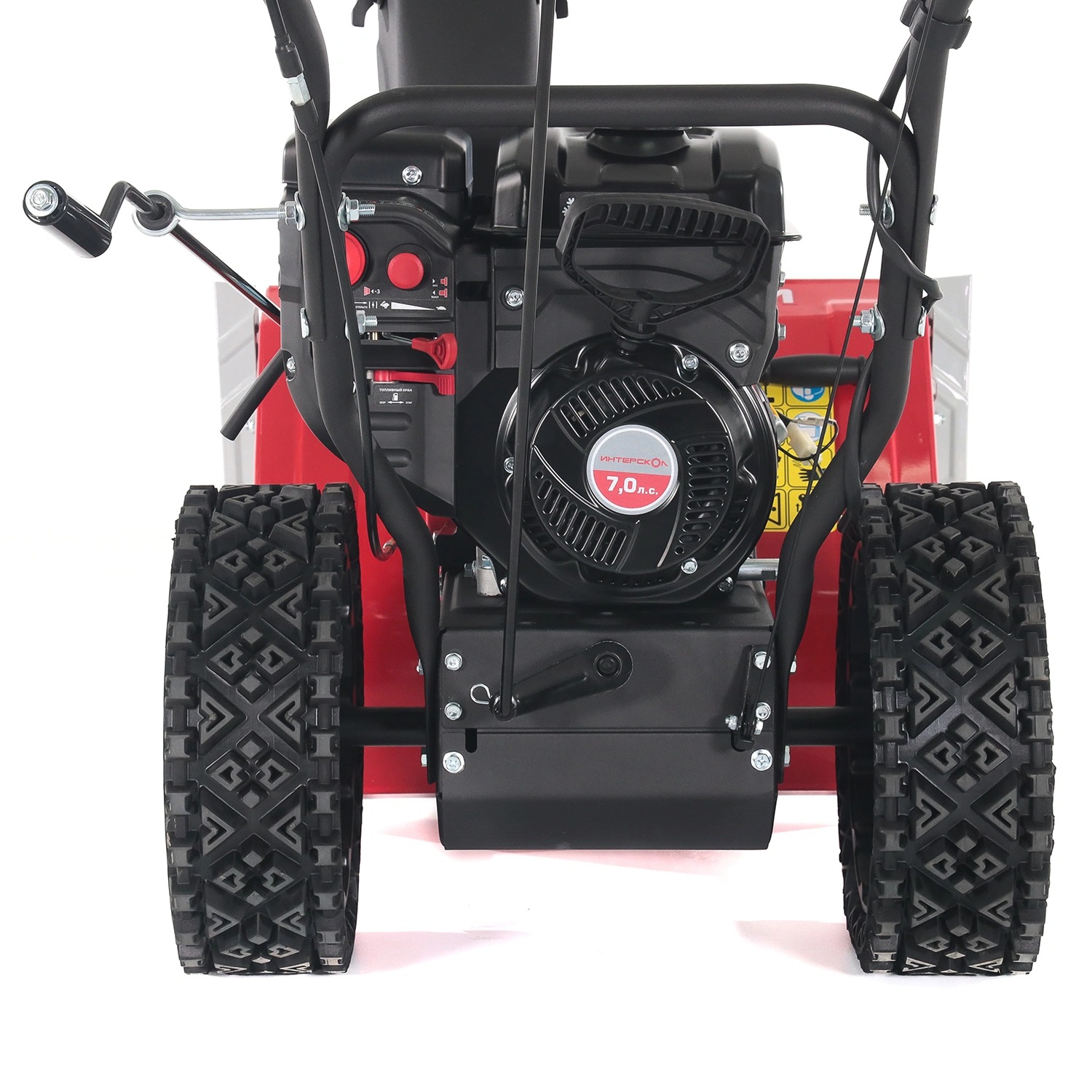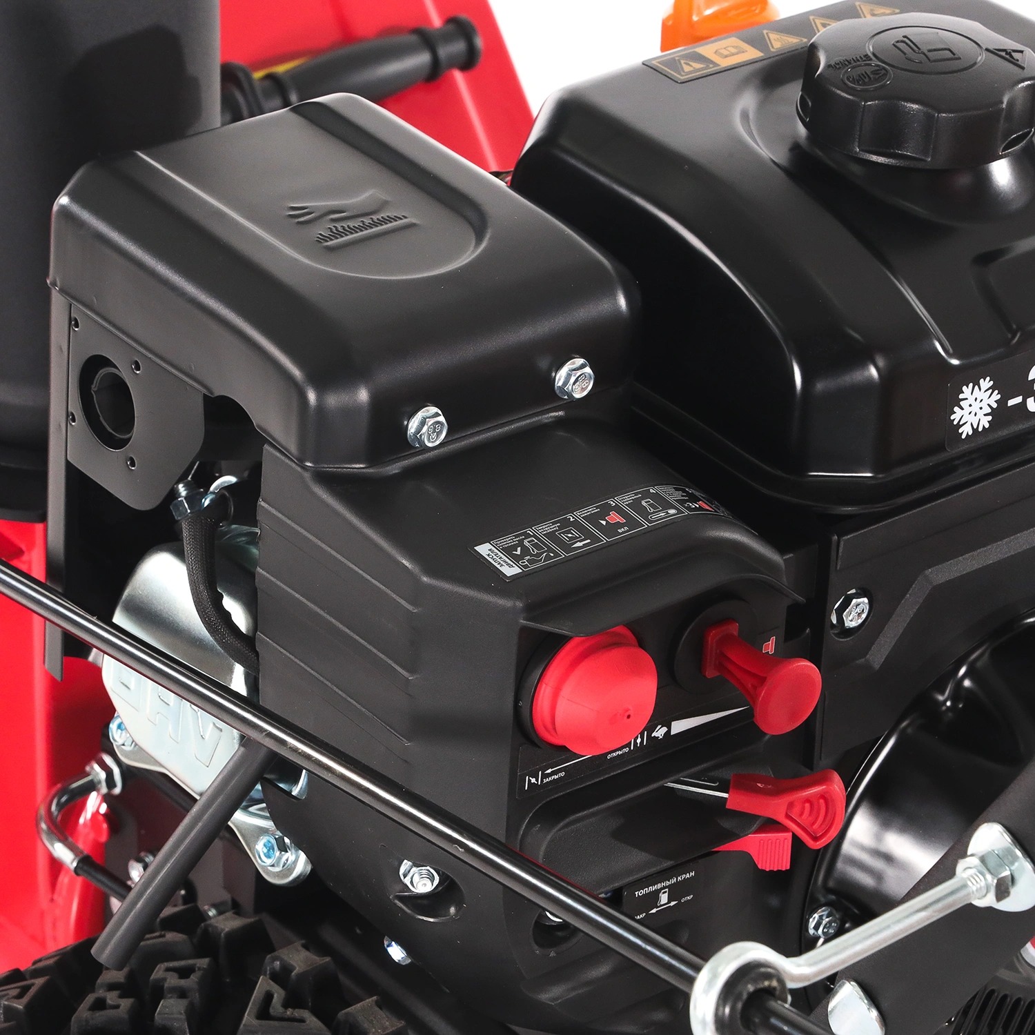 Бензиномоторный снегоуборщик ИНТЕРСКОЛ СМБ-56/7М оснащен мощным зимним двигателем на 7 л.с. и двухсоставным металлическим зубчатым шнеком, что позволяет успешно решать снегоуборочные задачи практически любой сложности. Машина является самоходной: колеса с безвоздушными зимними шинами обеспечивают отличную проходимость, а наличие пяти передач для движения вперед и двух – назад позволяют выбрать оптимальный режим работы в зависимости от плотности снега, толщины снежного покрова, размеров очищаемой площадки, возможностей пользователя и т.п., эффективно маневрируя даже в ограниченном пространстве.