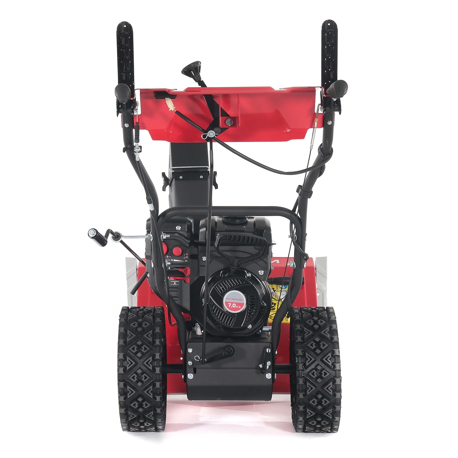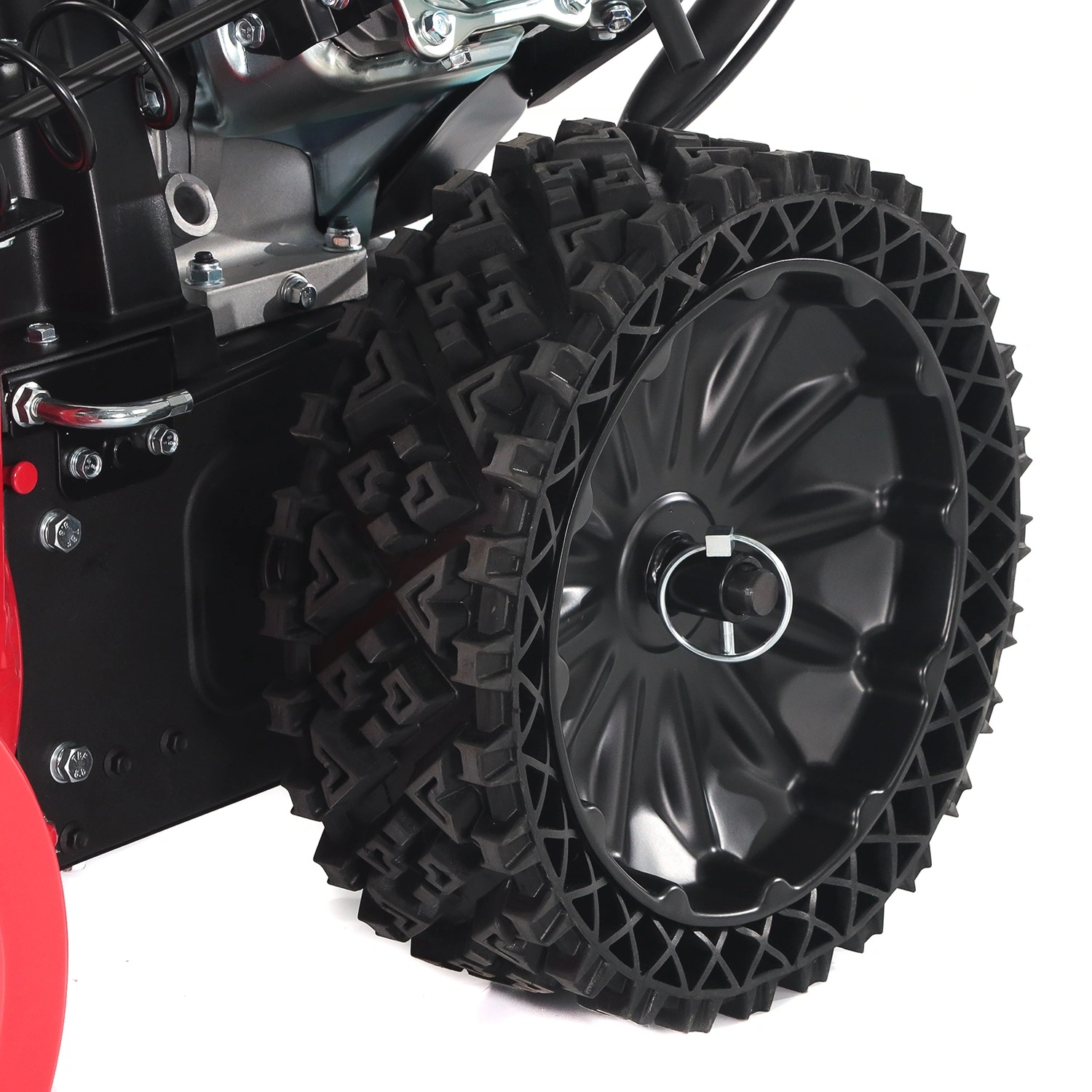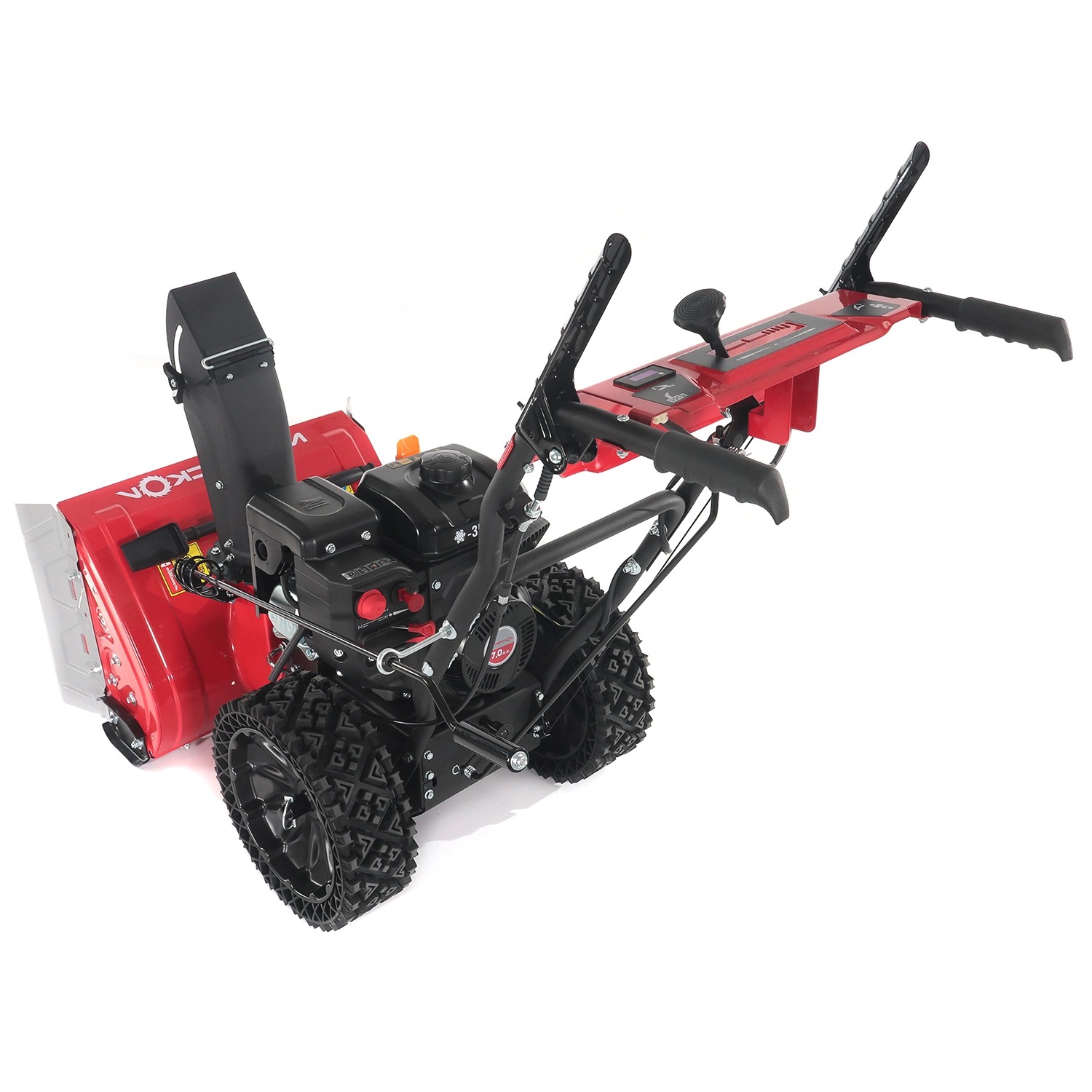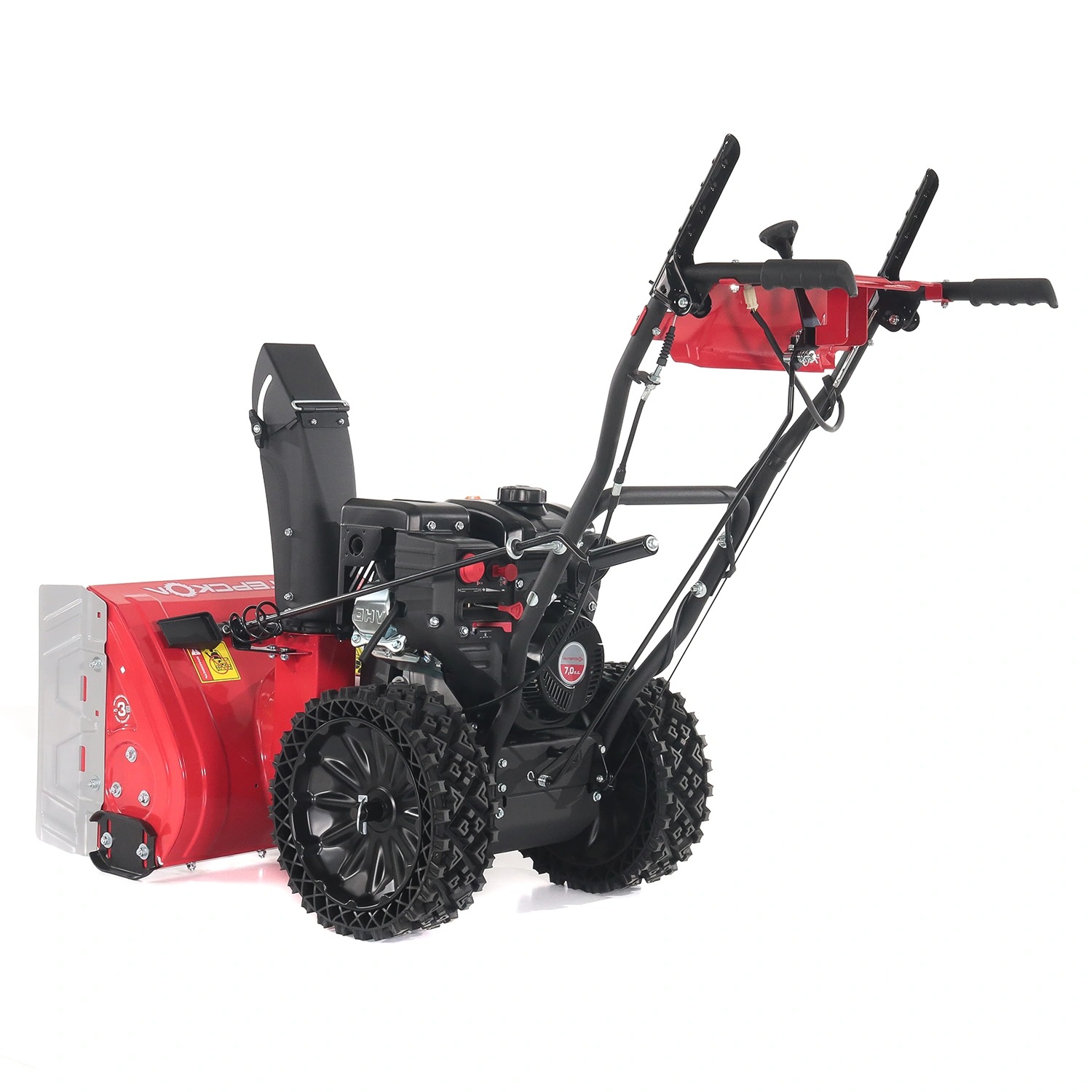 Снегоуборочные машины с двухступенчатым шнекороторным механизмом применяются для очистки ровных поверхностей с твёрдым покрытием от снега, в том числе плотного, слежавшегося, покрытого ледяным настом и т.д. Снежный слой подрезается и захватывается шнеком, после чего с помощью ротора выбрасывается через поворотный желоб на нужное расстояние в заданном пользователем направлении. Такая механизация значительно упрощает и ускоряет процесс уборки, делая загородную жизнь еще более приятной и комфортной. Благодаря применению снегоуборочных машин прошедший снегопад перестает быть проблемой и остается просто великолепным явлением природы, последствия которого устраняются легко, быстро и с удовольствием.