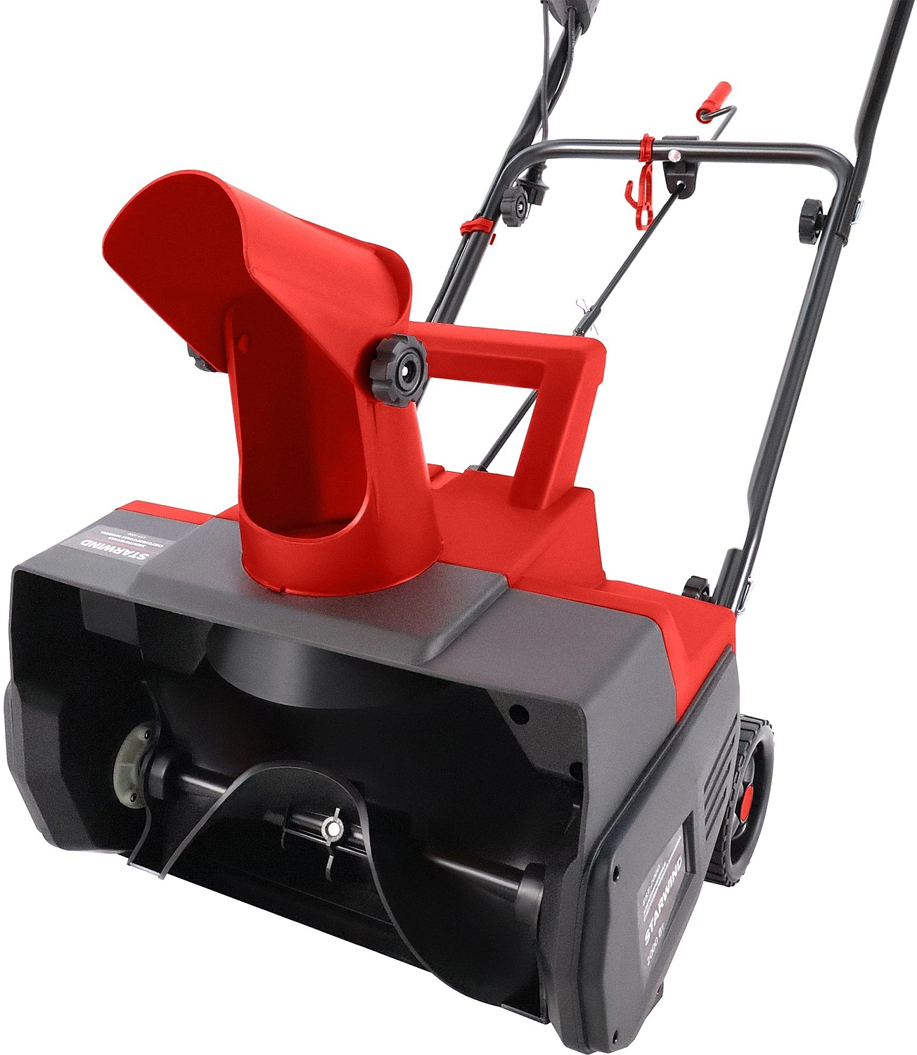 Снегоуборщик предназначен для бытового использования и работает от электрической сети 230 В. Модель STARWIND EST-2000 оснащена электродвигателем в 2000 Вт с числом оборотов до 2000 об/мин – это обеспечивает выброс снега на расстояние до 9 м. Ширина захвата снега – 46 см, высота захвата снега – 30,5 см. Благодаря поворотному пластиковому желобу, Вы можете регулировать направление выброса снега до 180 градусов в нужную сторону.