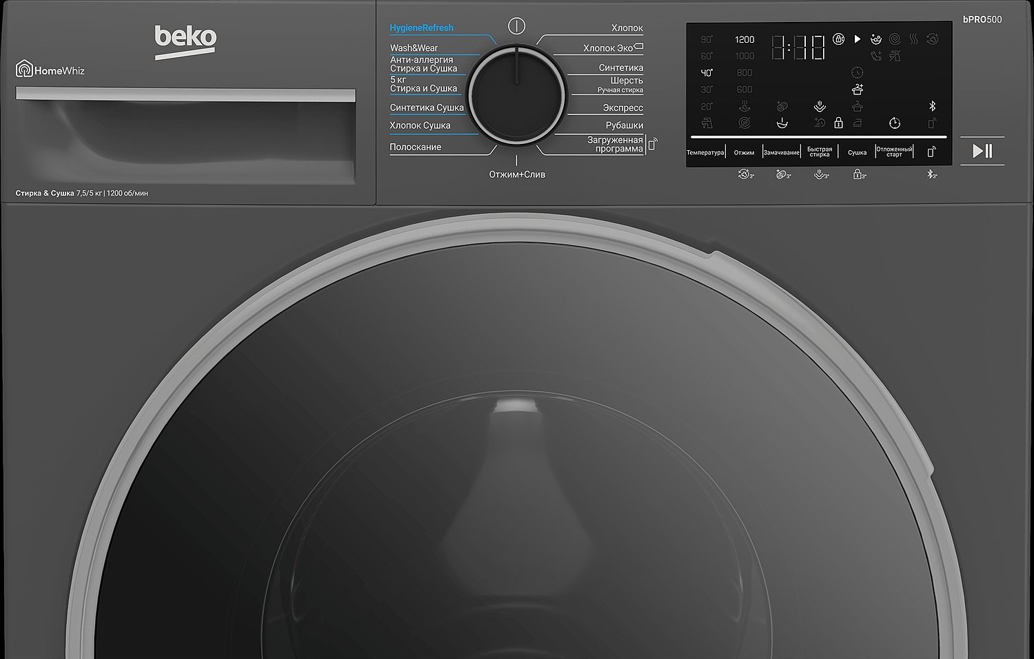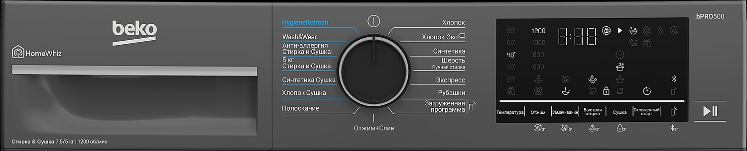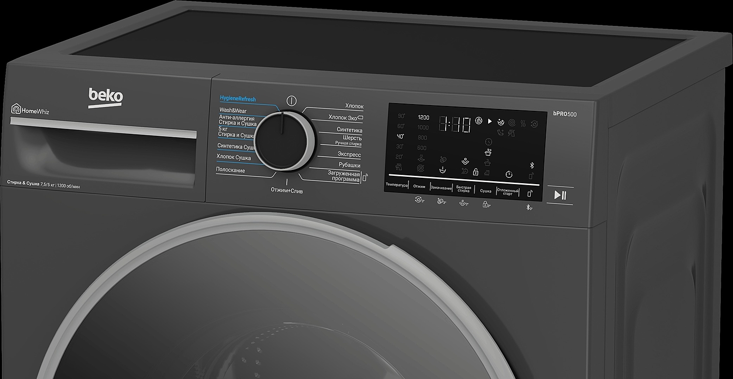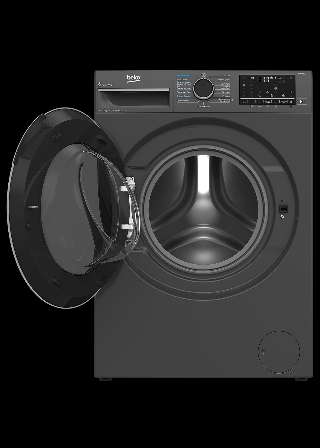 Стирально-сушильная машина Beko B3DFR57H22W с 15 программами стирки для различных типов тканей. Внутренний бак вмещает до 7.5 кг белья за один цикл. Функция блокировки кнопок защищает от случайного нажатия и изменения режима стирки. Модель также оснащена функцией контроля пенообразования для эффективной и безопасной работы.