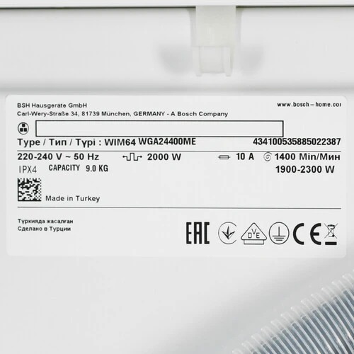 Стиральная машина Bosch WGA24400ME вместимостью до 9 кг белья. Безопасное использование гарантирует защита от детей: панель можно заблокировать с помощью комбинации клавиш, что предотвратит случайное изменение настроек. Антиаллергенная программа удаляет до 99% микробов с тканей, обеспечивая не только идеальную чистоту любого белья, но и безопасность.