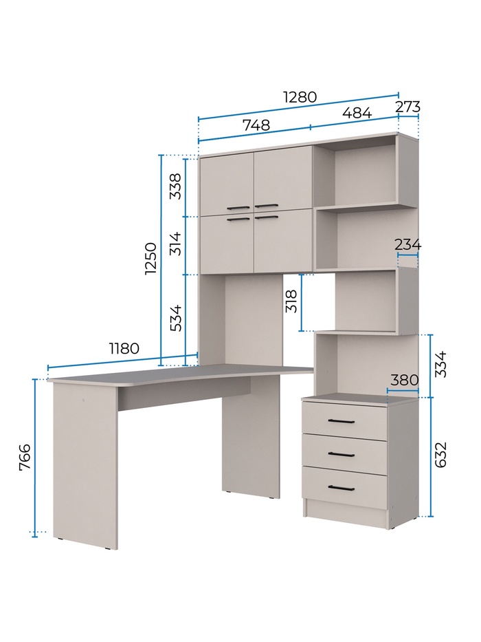 Представляет собой разновидность рабочего стола, предназначенного для организации комфортного места для учебы, работы или творчества. Особенность заключается в наличии встроенных ящиков и полок, позволяющих рационально хранить канцелярию, бумаги, гаджеты и другие необходимые принадлежности.