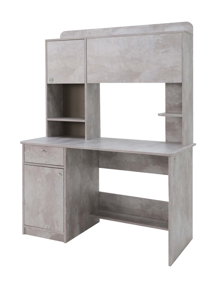 Функциональное решение для организации рабочего пространства дома или в офисе. Модель сочетает рабочую поверхность, встроенную тумбу и надстройку с системами хранения, обеспечивая удобство, порядок и эргономичность.