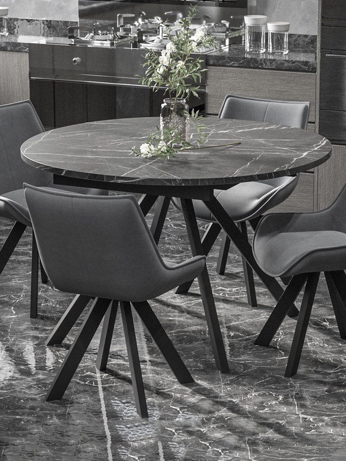 Оснащён механизмом «бабочка», который позволяет легко увеличить рабочую поверхность. Столешница выполнена из текстурированного премиум ЛДСП EGGER толщиной 25 мм и окантована кромкой в тон. Опоры изготовлены из профильной трубы в стиле лофт, что придаёт конструкции устойчивость и современный внешний вид.