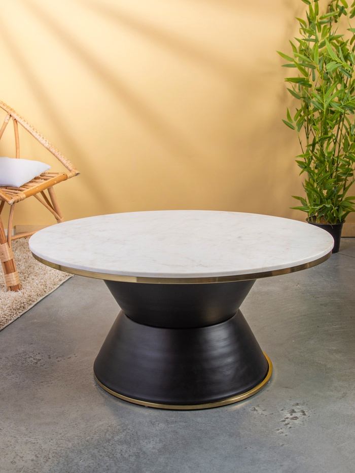 Столик журнальный "Флэт Уайт" 92х70х44 см, железо, мрамор