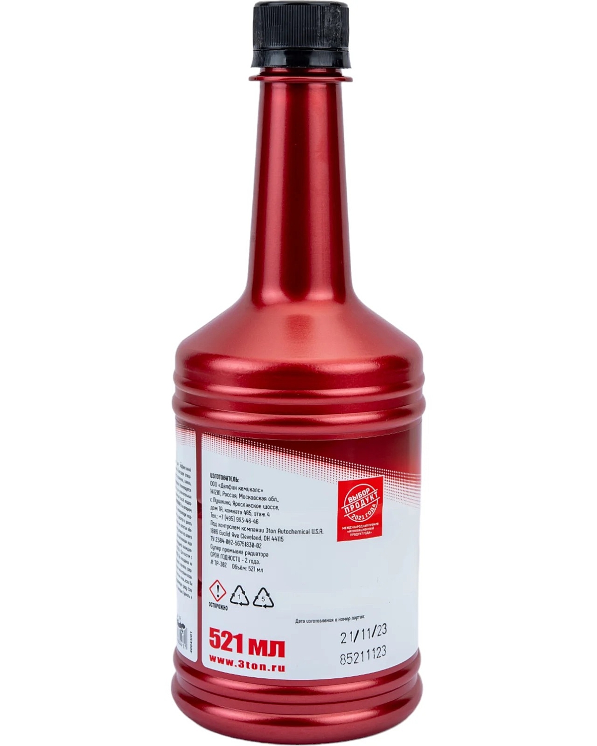 Супер промывка радиатора 3ton. Формула двойного действия обеспечивает эффективную очистку охлаждающей̆ системы в особо тяжелых и запущенных случаях. Благодаря специально разработанной̆ формуле удаляет отложения, накипь, смазку и ржавчину со шлангов и патрубков системы охлаждения. Способствует поддержанию системы в чистом виде. Особенно полезно использовать при смене охлаждающей̆ жидкости. Безопасна для алюминия и других металлов, резиновых шлангов и патрубков, используемых в охлаждающих системах современных двигателей̆. Содержит мягкие органические кислоты. Безопасный̆ способ поддержания охлаждающей̆ системы в чистоте и нормальном рабочем состоянии. Применение: На холодном, не заведенном двигателе, открыть крышку радиатора или расширительного бачка, слить охлаждающую жидкость и закрыть отверстие для слива. Энергично встряхнуть флакон. Залить содержимое упаковки в радиатор и долить воды до нормального уровня. Завести двигатель. По достижении рабочей температуры дать поработать на холостых оборотах 10-30 минут, затем заглушить и остудить двигатель. Приоткрыв сливной кран и, одновременно доливая из шланга воду в радиатор, вновь завести двигатель. Промывать систему охлаждения необходимо до тех пор, пока вытекающая вода не станет прозрачной. Выключить двигатель, слить всю воду и заполнить систему охлаждения рекомендуемой охлаждающей жидкостью. Одна упаковка средства (521 мл) рассчитана для охлаждающих систем объемом 10-20 л. Для систем с объемом более 20 л рекомендуем использовать две упаковки (1042 мл).