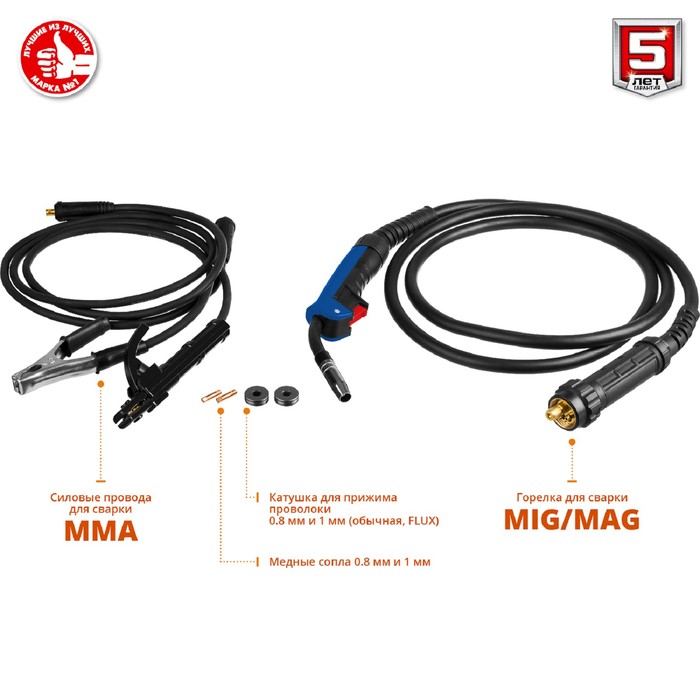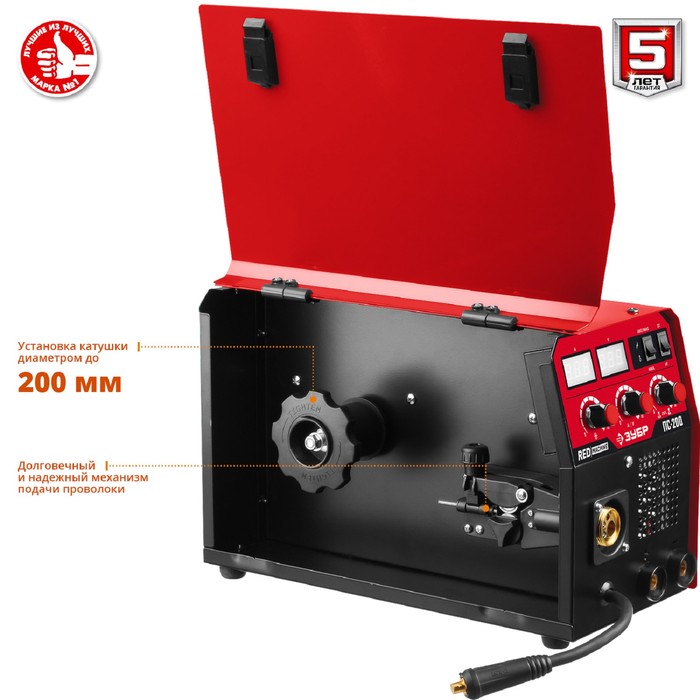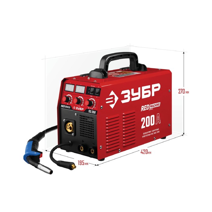 Сварочный полуавтомат «ЗУБР» ПС-200, инверторный, 6.4 кВт, max 29 А, ММА, MIG, MAG, КПД 85%