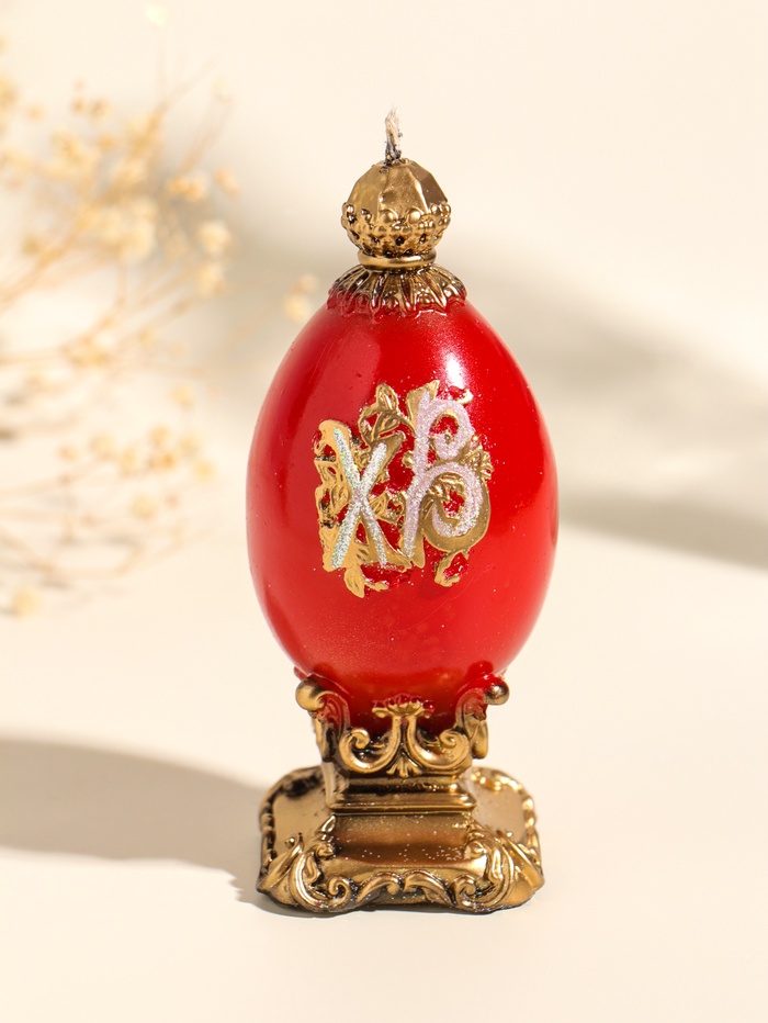 Это пасхальное яйцо-свеча станет тёплым акцентом праздничного стола или душевным подарком, наполняющим дом особым, торжественным настроением. Его классическая форма и благородное сочетание золота и красного создают атмосферу уюта и светлой радости, характерную для этого дня.