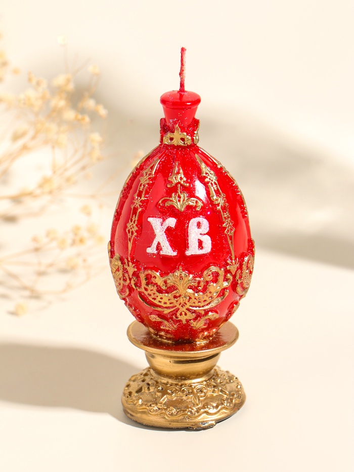 Это пасхальное яйцо-свеча создаёт тёплый, живой свет, наполняя дом атмосферой праздника. Его изящный орнамент и благородное сочетание золота и красного превращают простой ритуал зажигания свечи в красивую традицию. Идеальная деталь для пасхального декора стола или уютного интерьера.