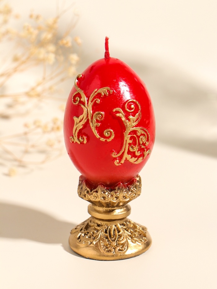 Это пасхальное яйцо-свеча станет центром праздничного стола, создавая тёплую и торжественную атмосферу. Его классическая форма и благородное сочетание золота и красного передают саму суть светлого праздника — радость, свет и надежду. Зажжённая свеча наполнит дом уютным, живым светом, который мерцает подобно огню в лампаде.