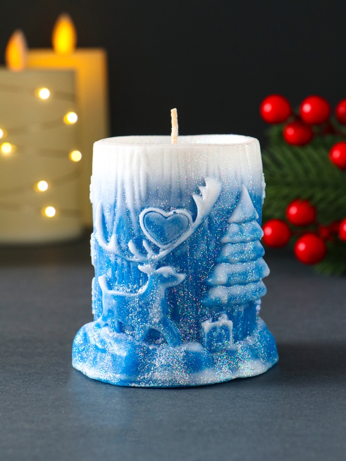 Создайте волшебную атмосферу зимнего праздника! Новогодняя свеча «Сказочный лес» в синем цилиндре — это классическое рождественское украшение для создания уюта и торжественного настроения. Горит ровно и долго, наполняя пространство теплым живым светом.