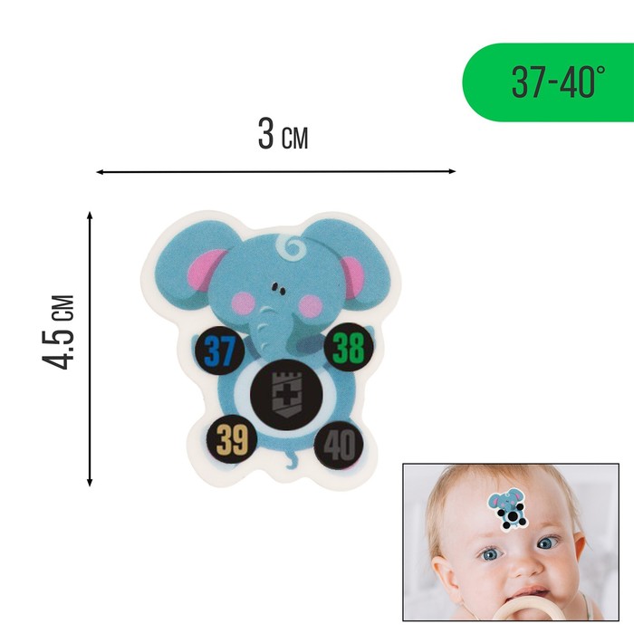 Термометр налобный "Слоненок", до 40°, 4,5 х 3 см