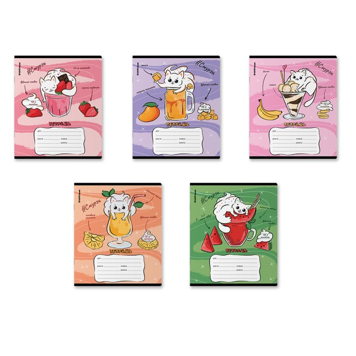 Тетрадь школьная ученическая формата А5+ (170х203 мм). Обложка из высококачественного мелованного картона плотностью 170 г/м2. В блоке 18 листов в линейку с полями. Бумага офсетная плотностью 60 г/м2. Цвет линовки - синий. Скругленные уголки обложки и блока. Тип скрепления - скоба. Тетради разного дизайна упакованы в термоусадочную пленку по 10 штук.
