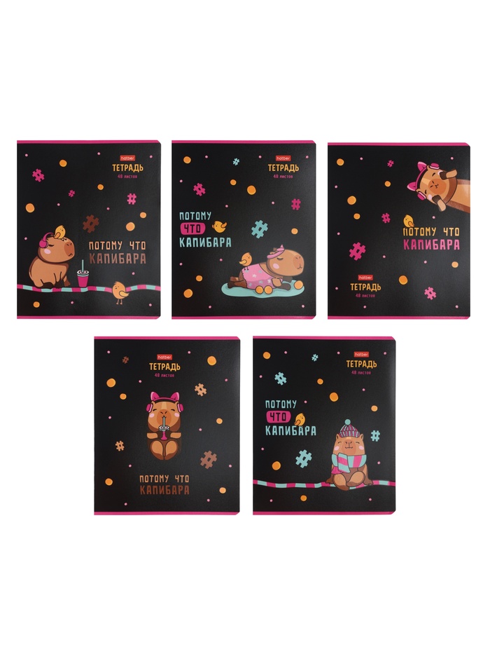 Тетрадь 48л кл Hatber "Потому что Капибара", на скобе, скругл углы, 60-65г/м² 5В МИКС