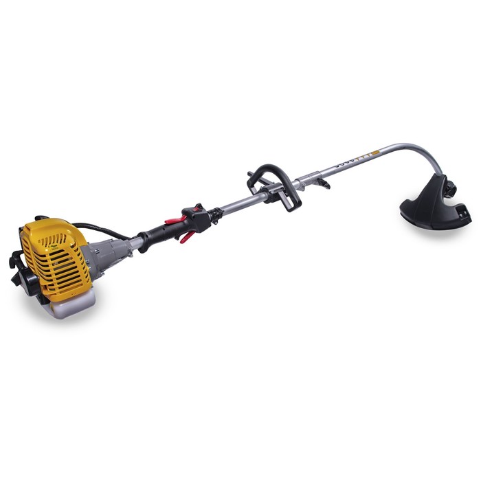 Бензиновый триммер с изогнутой разборной штангой, мощность 1 л.с., леска 2 мм — легкий инструмент для скашивания травы на небольших участках. Оснащен 2-тактным двигателем мощностью 1 л.с. (750 Вт), объем двигателя 25.4 см³. Изогнутая разборная штанга облегчает хранение и удобна для работы под кустами и в труднодоступных местах. Работает с леской диаметром 2 мм.