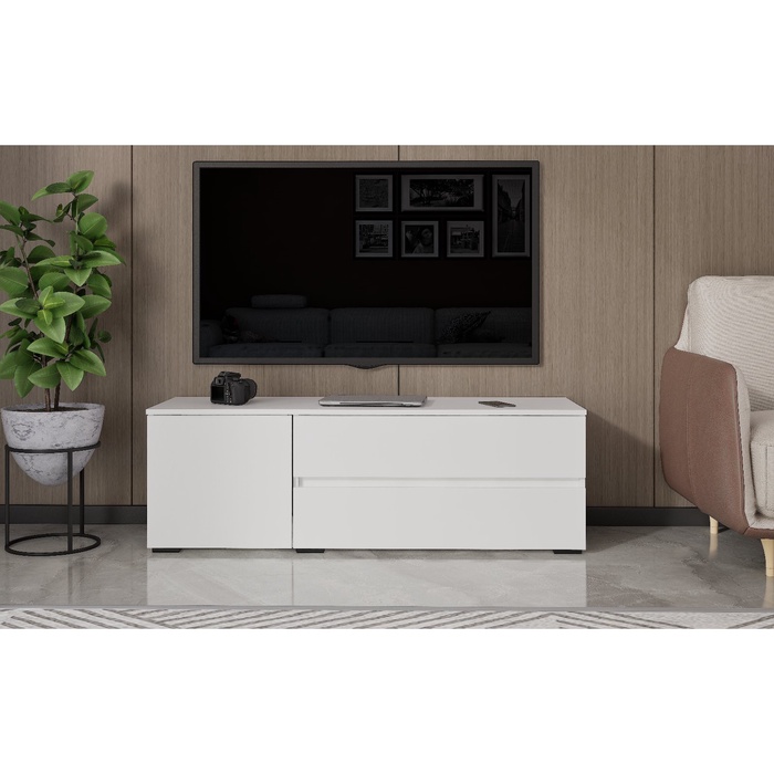 • Просторные ящики: два вместительных выдвижных ящика и ниша с дверцой, обеспечат хранение дисков, пультов дистанционного управления и других мелких бытовых приборов.