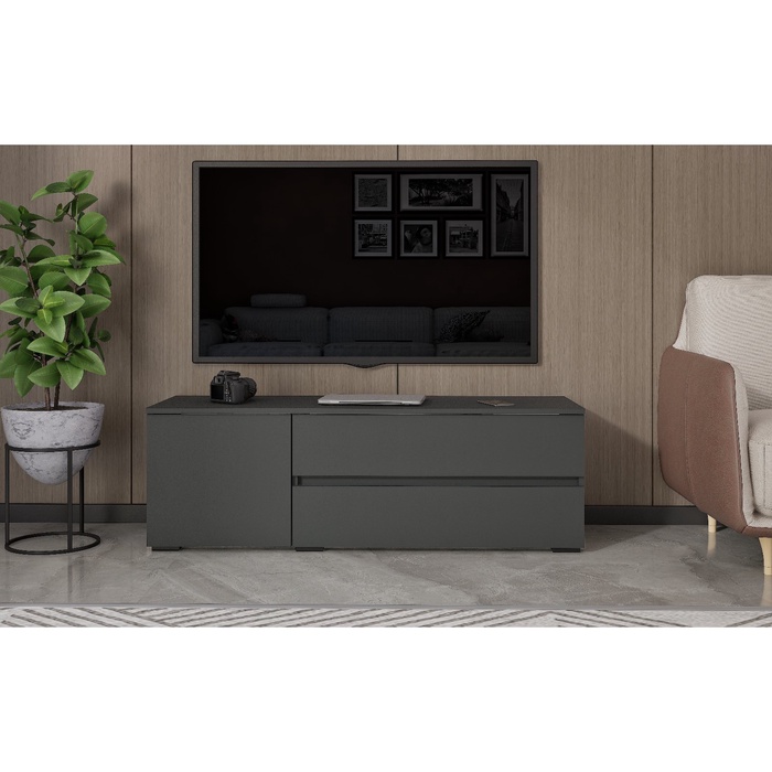 • Просторные ящики: два вместительных выдвижных ящика и ниша с дверцей, обеспечат хранение дисков, пультов дистанционного управления и других мелких бытовых приборов.