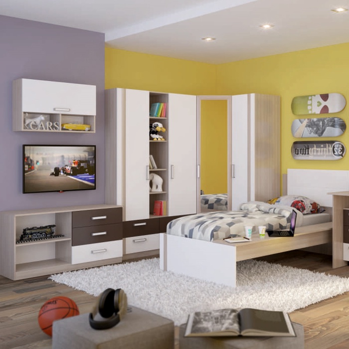 ТВ тумба Walker, 383×1126×644 мм, цвет ясень шимо светлый / белый