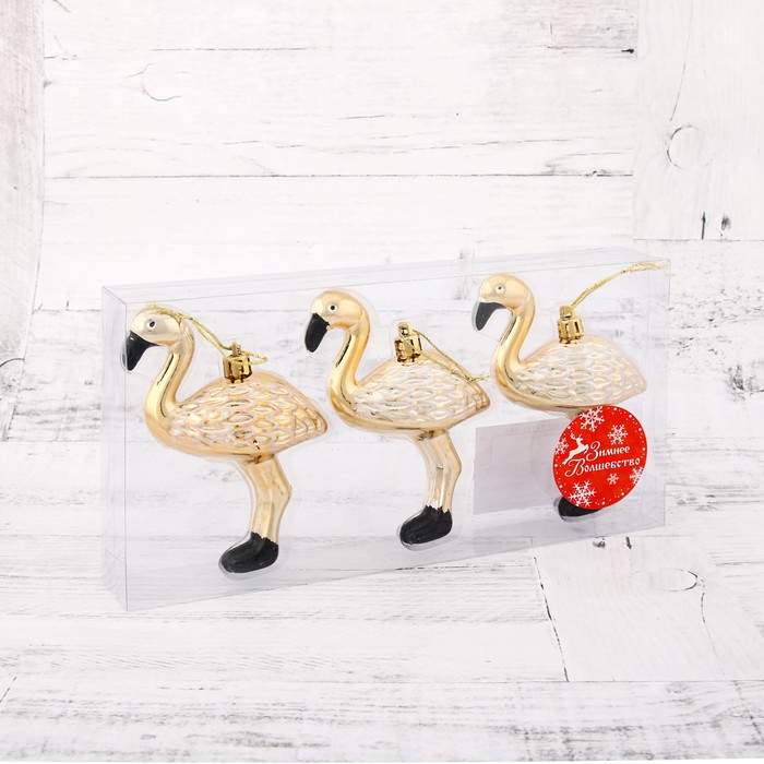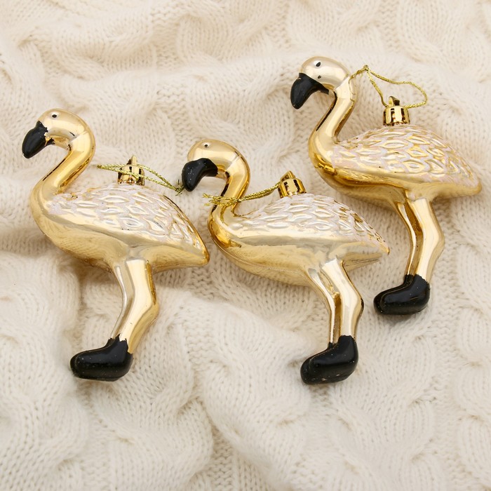 Этот набор выбирают те, кто хочет выделить свою ёлку среди других. Золотые фламинго — это не просто игрушки, а элементы истории зимнего праздника, где фантазия встречается с реальностью. Они хорошо сочетаются с матовыми шарами, текстильными элементами и металлическими акцентами. Изготовлены из прочного пластика — сохранят внешний вид на несколько Новогодних сезонов. Такие игрушки могут стать началом коллекции или ярким акцентом в оформлении ёлки.