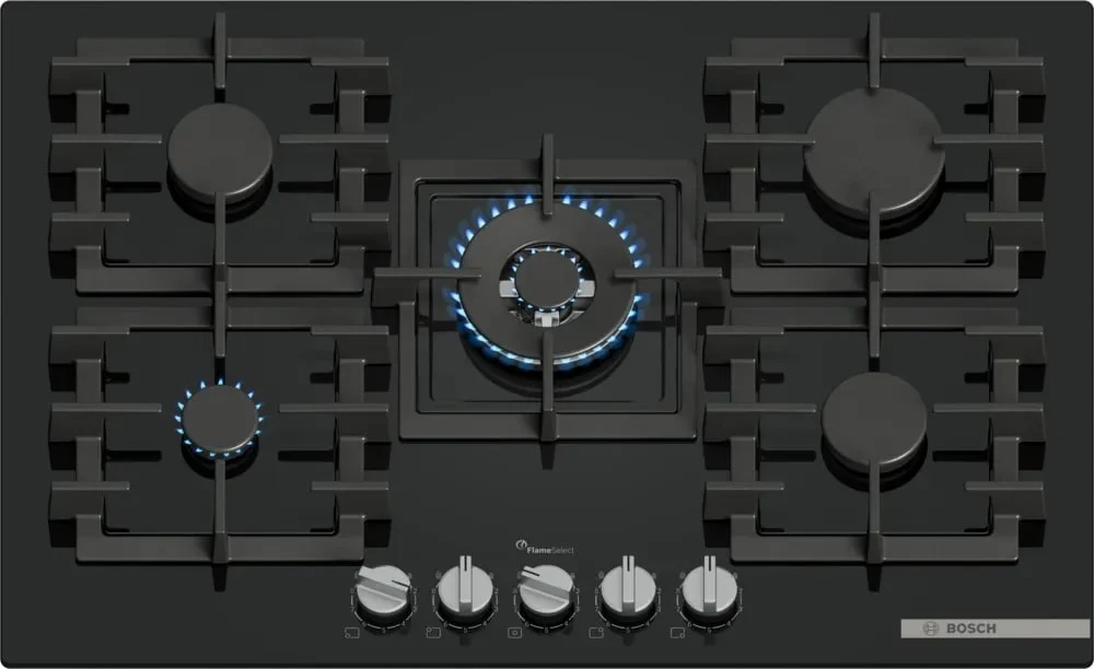 Газовая варочная панель Bosch PPQ7A6I45 выполнена из закалённого стекла чёрного оттенка, которое придаёт кухонному интерьеру эффект глубины и контраста. Сдержанная геометрия, тонкий профиль высотой 5.8 см и продуманная компоновка элементов создают ощущение лёгкости при сохранении солидной функциональности. Лаконичный цвет легко взаимодействует с различными материалами столешниц, а качество обработки кромок обеспечивает аккуратный стык при установке вровень со столешницей. Установка вровень предусматривается конструктивно — изделие подходит для монтажа в нишу шириной 56–56.2 см и глубиной 48–49 см при минимальной толщине столешницы 30 мм, что позволяет интегрировать варочную поверхность в современный мебельный гарнитур с ровной рабочей плоскостью.