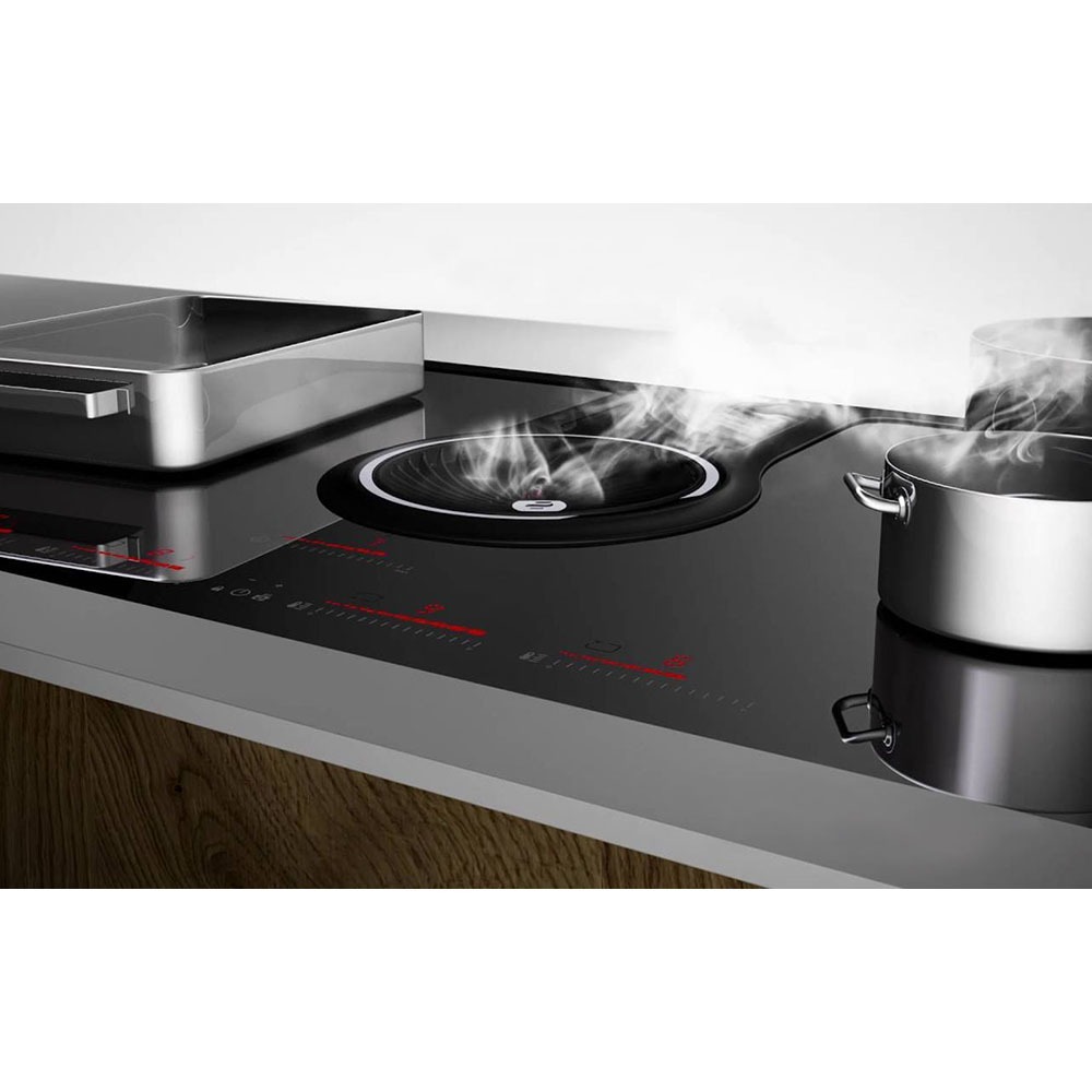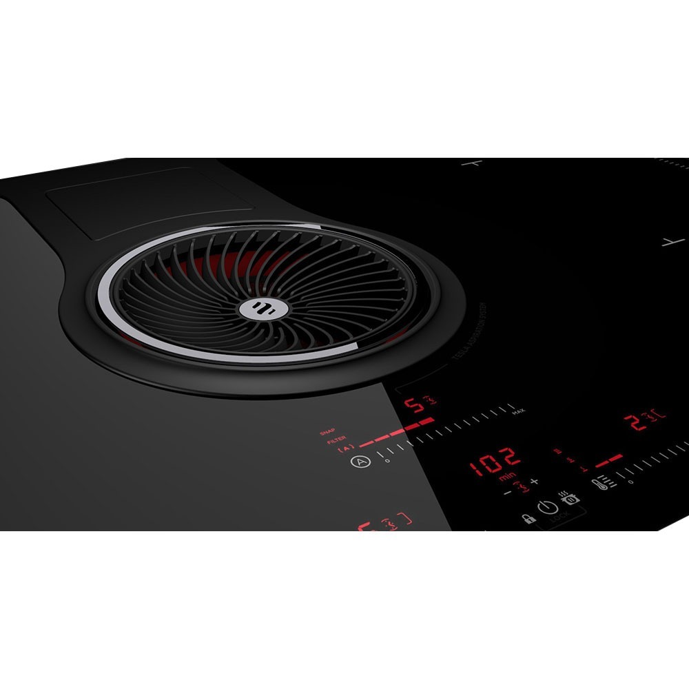Режим Power позволяет на короткое время быстро увеличить интенсивность нагрева, после чего устройство автоматически вернется к прежнему режиму, чтобы блюдо не пригорело. Вы можете объединить варочные зоны, чтобы использовать посуду большого размера. После готовки варочная панель может поддерживать температуру блюда — не придется разогревать его, даже если вы садитесь за стол не сразу. Встроенная вытяжка с алюминиевым жироулавливающим фильтром работает на отвод воздуха для удаления всех неприятных запахов и испарений. Для очистки воздуха — режима рециркуляции — вы можете отдельно приобрести и установить угольный фильтр.