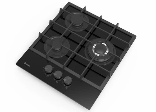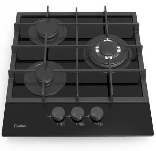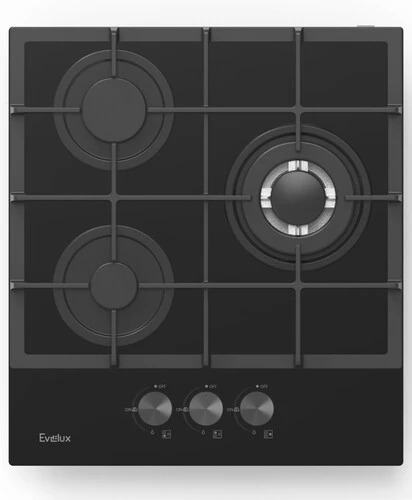 Газовая варочная панель с шириной 45 см и 3 конфорками подойдет для небольшой кухни. Простой и стильный дизайн панели из закаленного стекла с чугунными решетками и металлическими регуляторами будет лаконично смотреться на кухне. Варочная панель оборудована системой «Газ-контроль» – это означает, что утечки газа исключены, если пламя случайно погаснет. Благодаря встроенному автоподжигу, панель включается автоматически. Но если в квартире отключат электричество, газ можно будет поджечь спичкой.