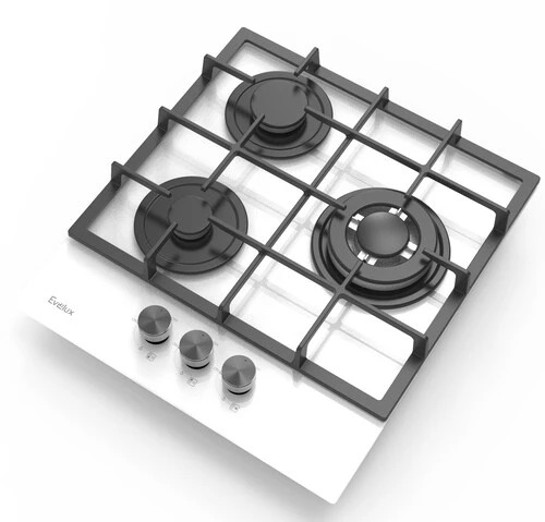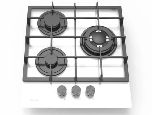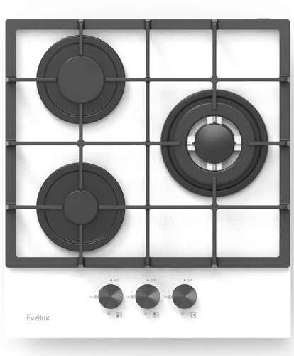 Газовая варочная панель с шириной 45 см и 3 конфорками подойдет для небольшой кухни. Простой и стильный дизайн панели из закаленного стекла с чугунными решетками и металлическими регуляторами будет лаконично смотреться на кухне. Варочная панель оборудована системой «Газ-контроль» – это означает, что утечки газа исключены, если пламя случайно погаснет. Благодаря встроенному автоподжигу, панель включается автоматически. Но если в квартире отключат электричество, газ можно будет поджечь спичкой.