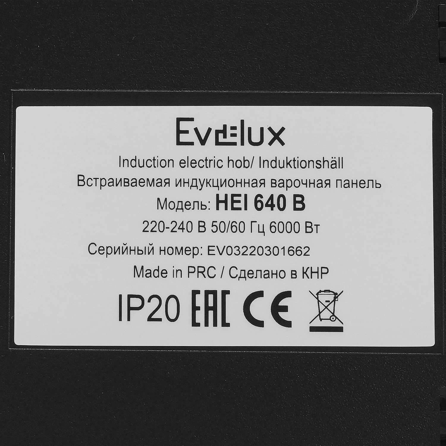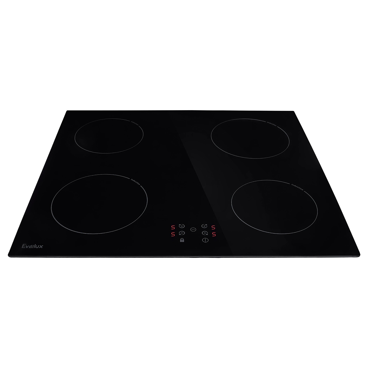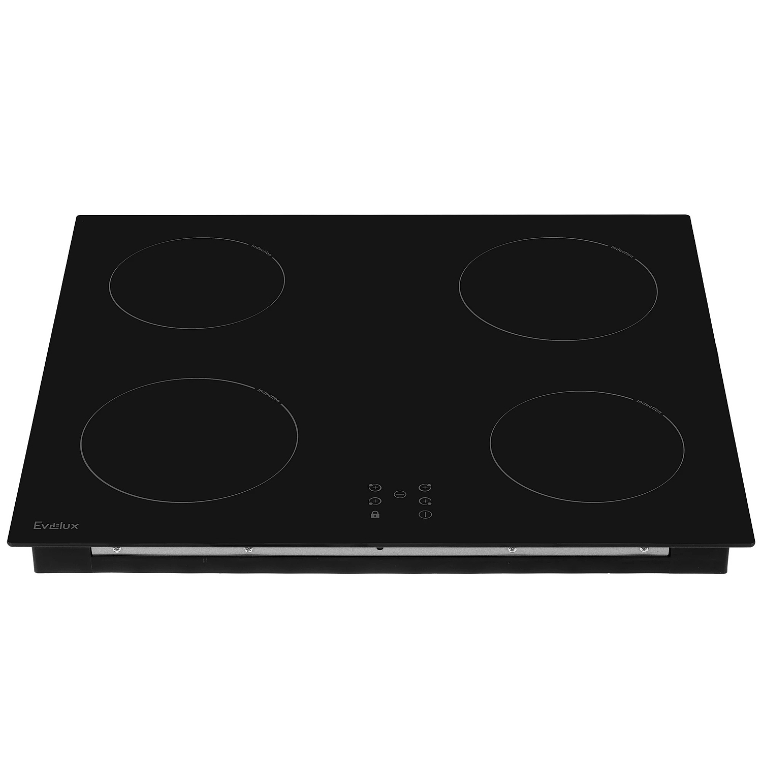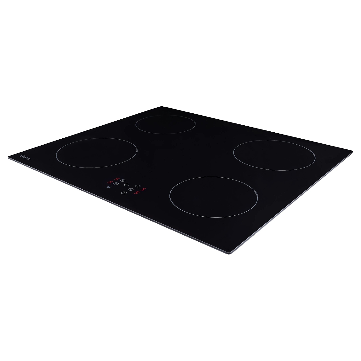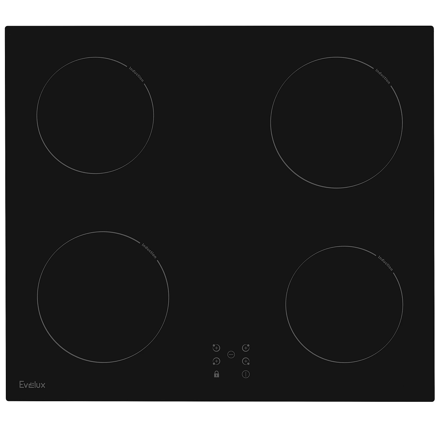Встраиваемая варочная панель Evelux на 4 конфорки выполнена из ударопрочной стеклокерамики. Достоинство индукционной варочной панели в том, что накаляется только дно посуды, а ее поверхность практически не нагревается.