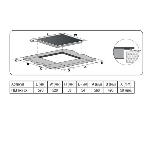 Ширина встраивания, см